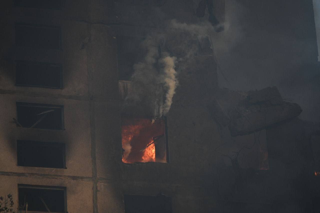 Синегубов добавил, что есть угроза разрушения дома. На видео попал момент обвала балконов 12-этажки.