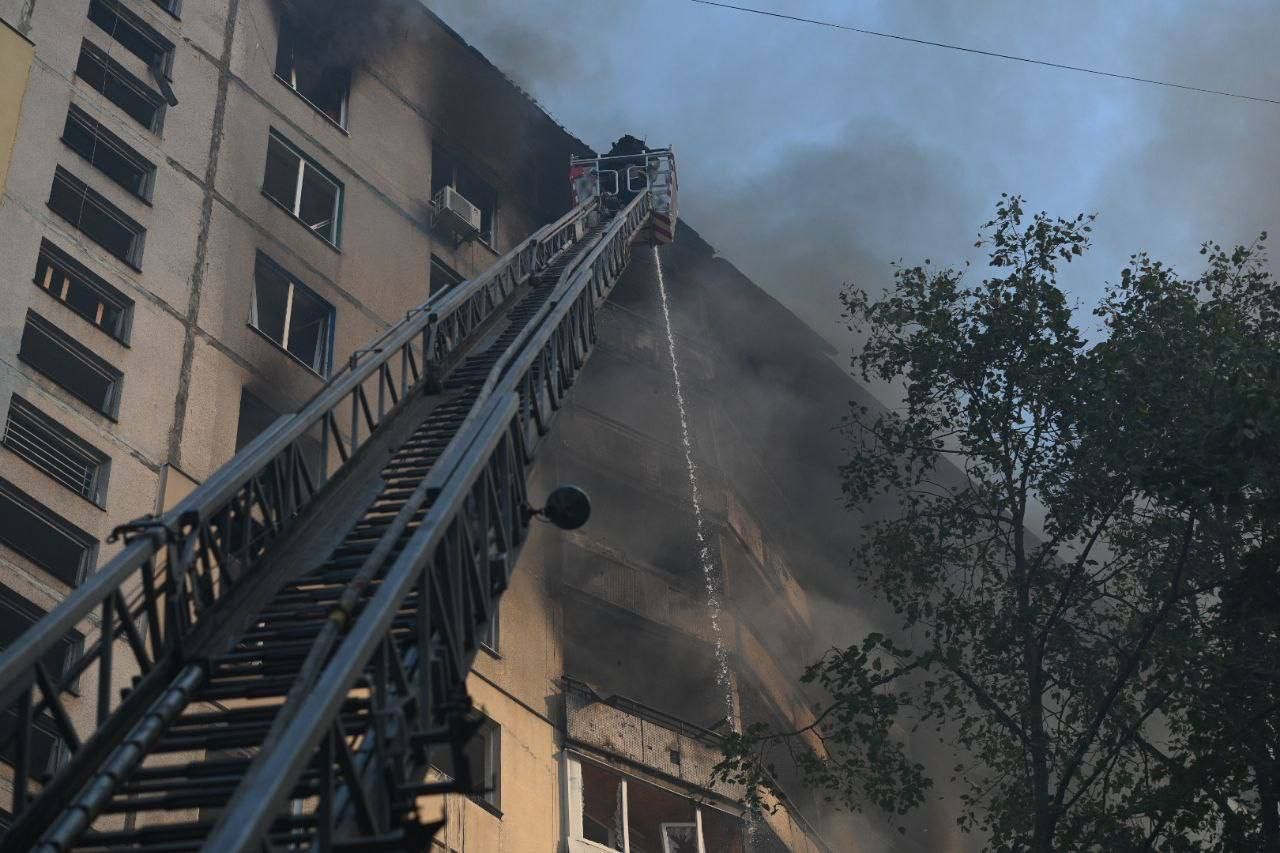В Индустриальном районе попадание в 12-этажный дом. Повреждены 5 автомобилей. Три человека погибли.