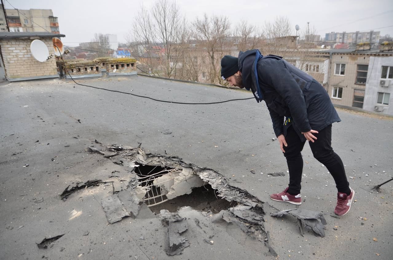 Я вскочил с постели после мощного взрыва совсем рядом. Снаряд прилетел в крышу нашего дома. Взрывотехники говорят, что это ствольная арта 152 калибра,