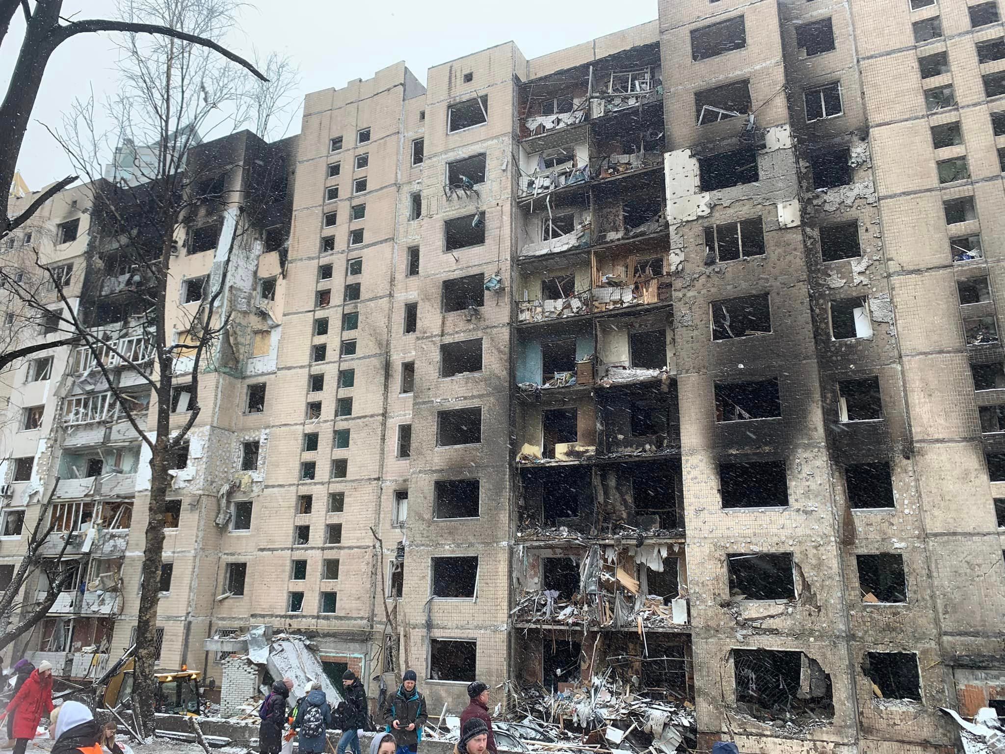 Виктория воспитывает двух дочерей в возрасте 6 и 13 лет. Они вместе со свекровью жили в доме, в который попала вчера российская ракета в Киеве. Их подъезд стал эпицентром удара.