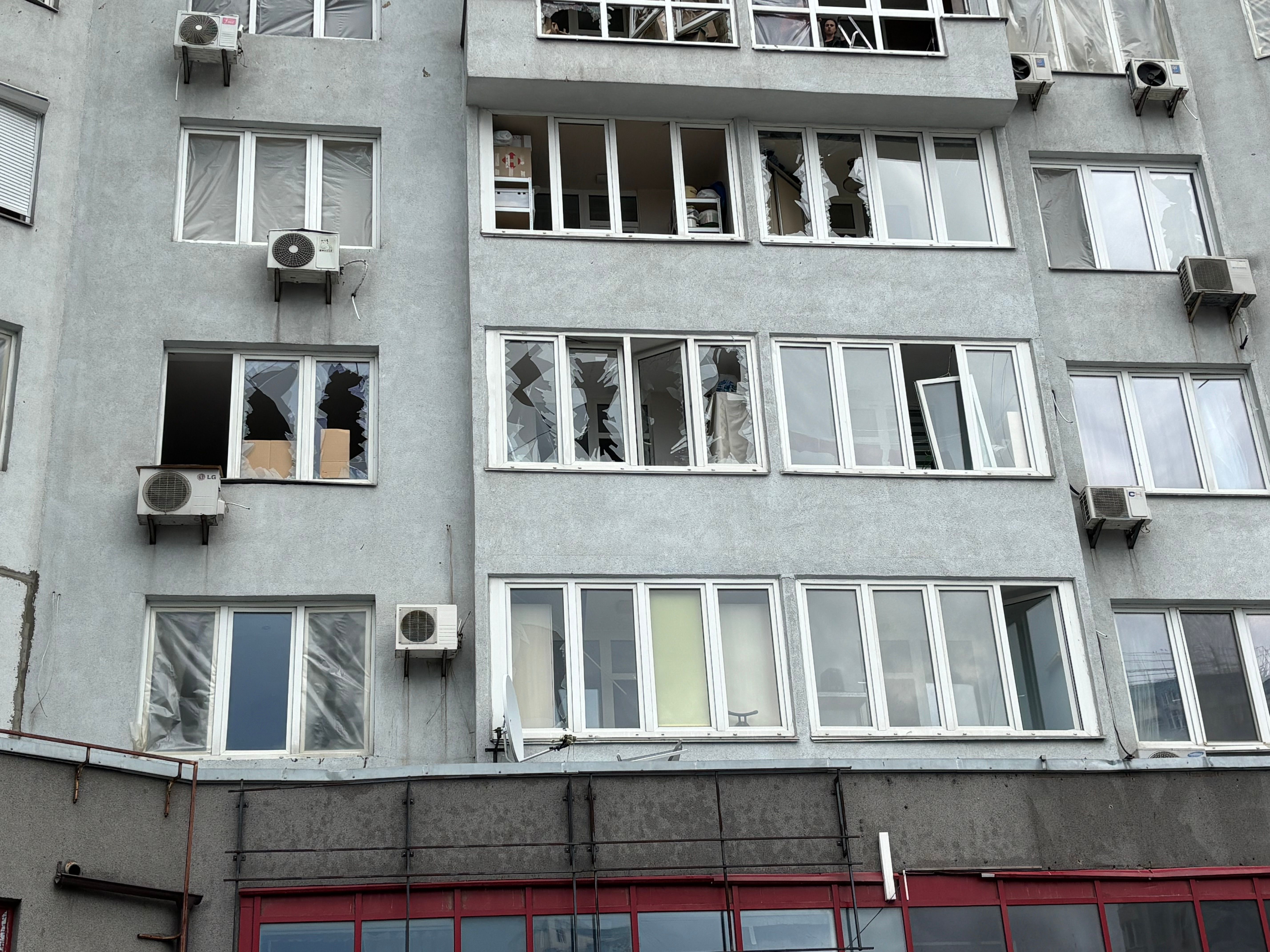 Жители сообщили, что во время атаки дом дрожал, в квартирах сыпались потолок и стены.