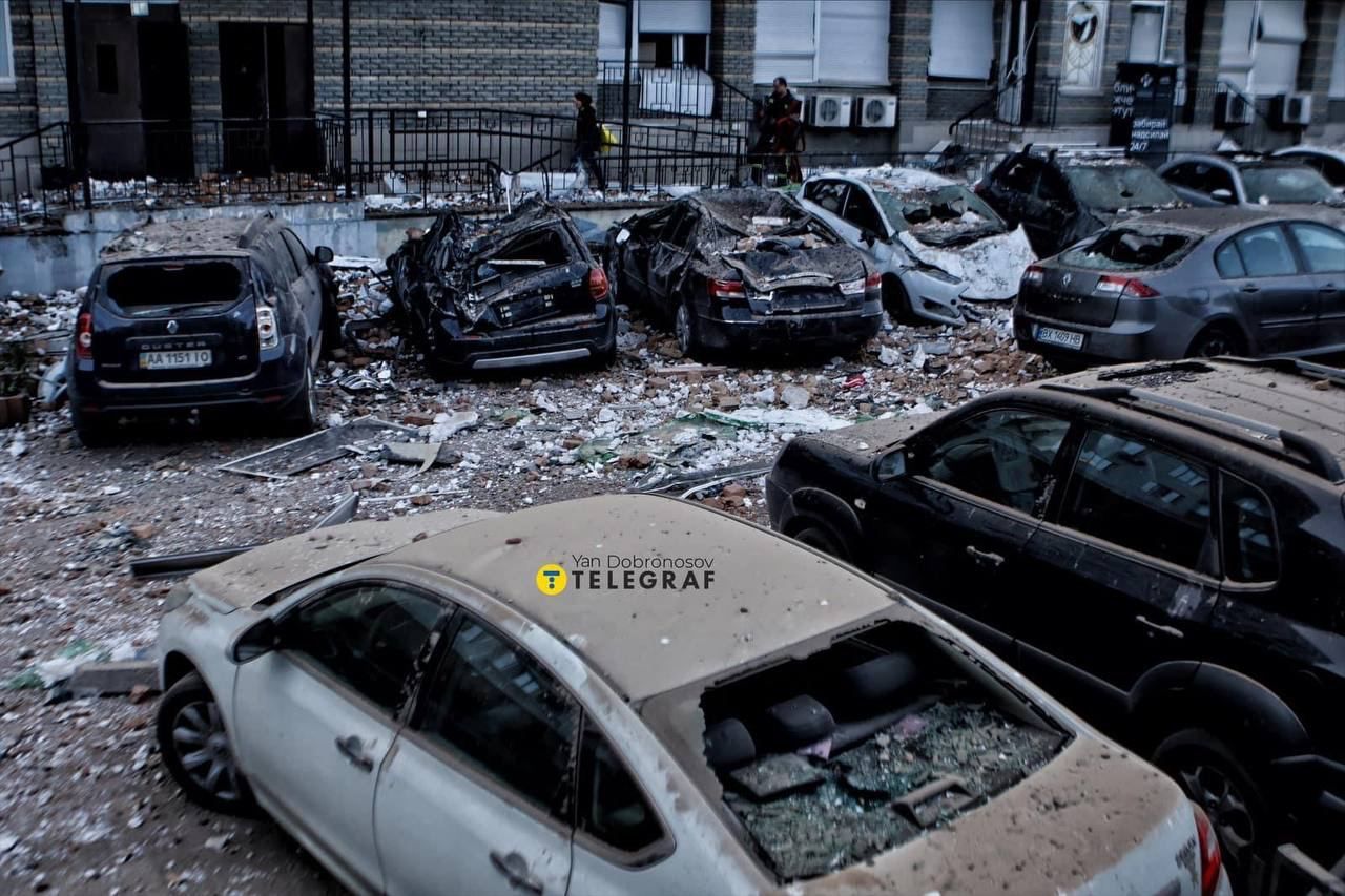 Последствия вражеских обстрелов по Киеву в Голосеевском районе / фото "Телеграф"