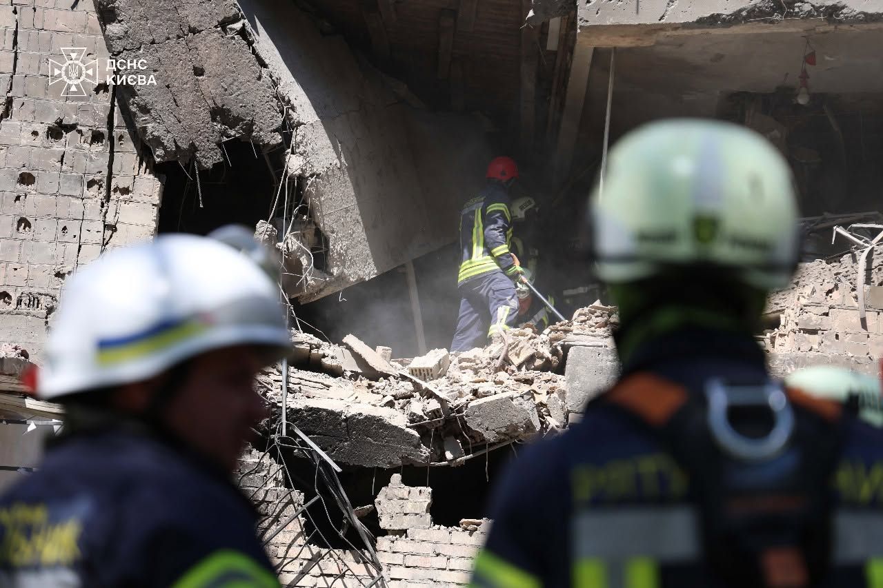 Спасатели ликвидируют последствия атаки / Фото ГУ ГСЧС Украины в Киеве