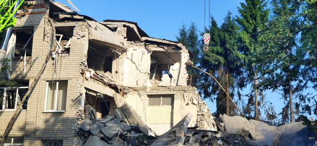 Ракеты попали в обычную общеобразовательную школу, сейчас здесь работают спасатели, которые разбирают завалы.