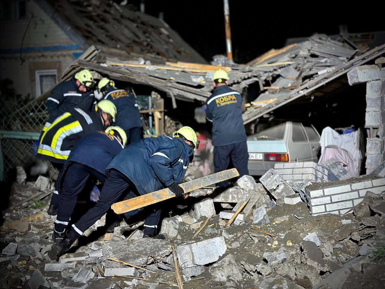 Однако доподлинно известно, что в городе раздавались взрывы и попадания. Оккупанты обстреляли мирные дома одного из частных секторов города. Секретарь Запорожского городского совета Анатолий Куртев сообщил, что в результате атаки один дом разрушен полностью, два имеют сильные повреждения, еще в около 40 выбиты окна и повреждены кровли.