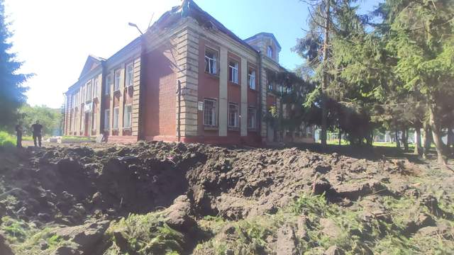 На территории школы были обнаружены обломки ракеты. Журналистка 24 канала посетила школу в Индустриальном районе города. На месте удара образовалась огромная воронка. Также на фото можно увидеть, какие разрушения получили школьные классы.