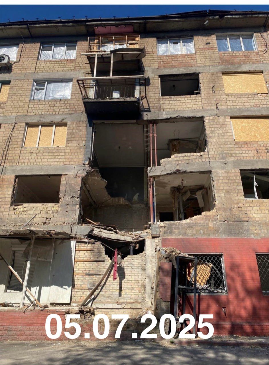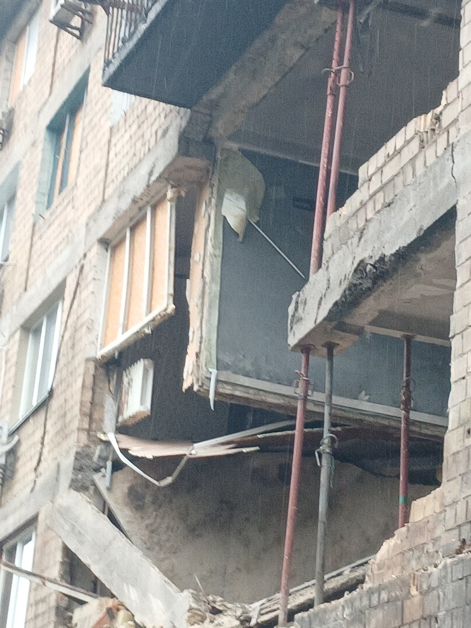 Позже по поводу аварии в доме высказалась его жительница Наталья Лещенко. Она рассказала, что после того, как 4 июля в подъезд дома влетел вражеский дрон, рядом с ее домом были разрушены две квартиры, под ее домом была разрушена стена, а стена собственной квартиры "повисла в воздухе".