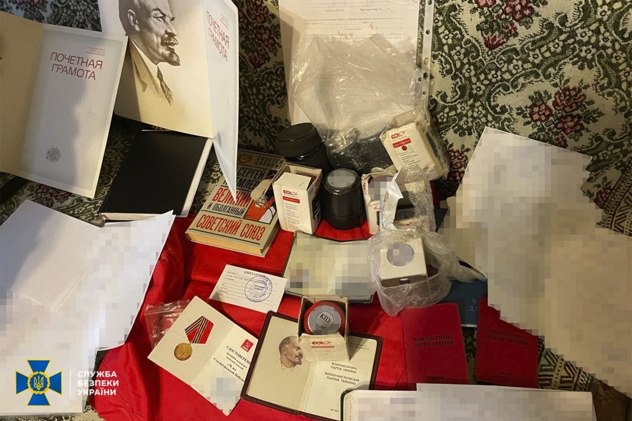 В результате следственно-оперативных действий сотрудники СБУ обнаружили оружие, георгиевские ленты и флаги страны-агрессора. Кроме того, обнаружили склады с прокремлевской литературой, агитационными листовками с символикой тоталитарного режима СССР и "методички" российских пропагандистов.