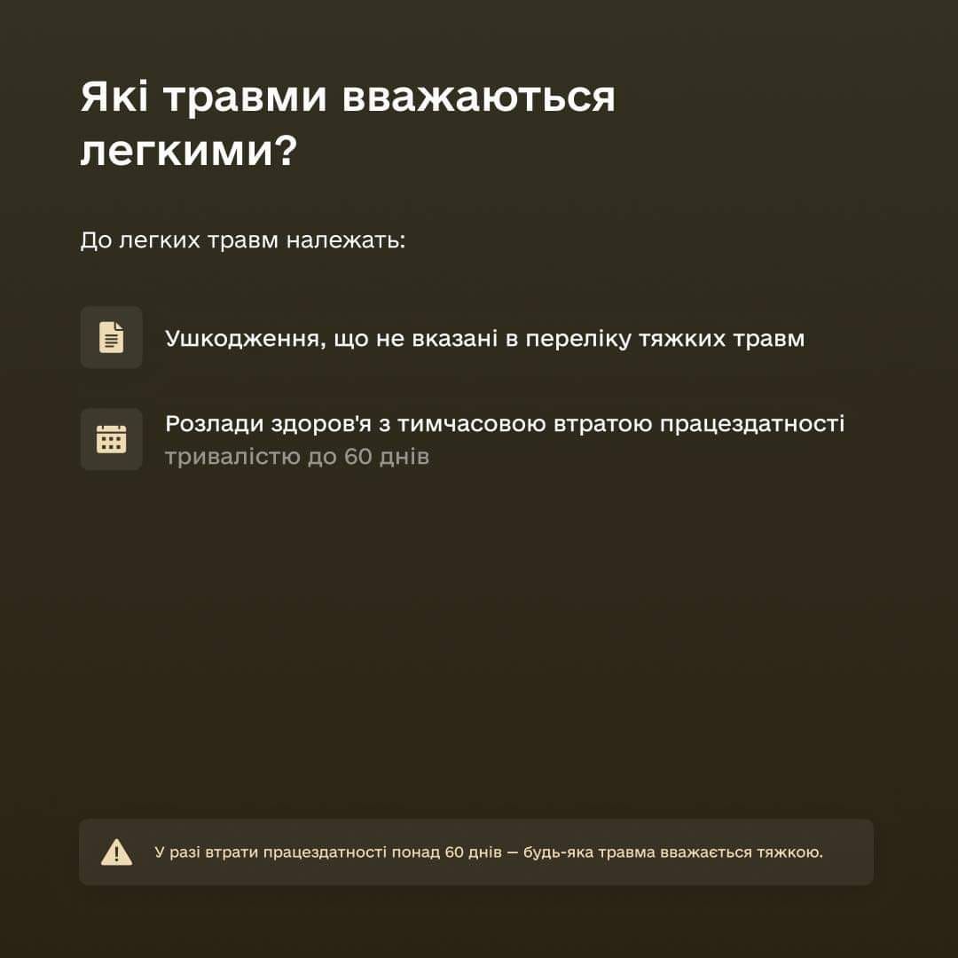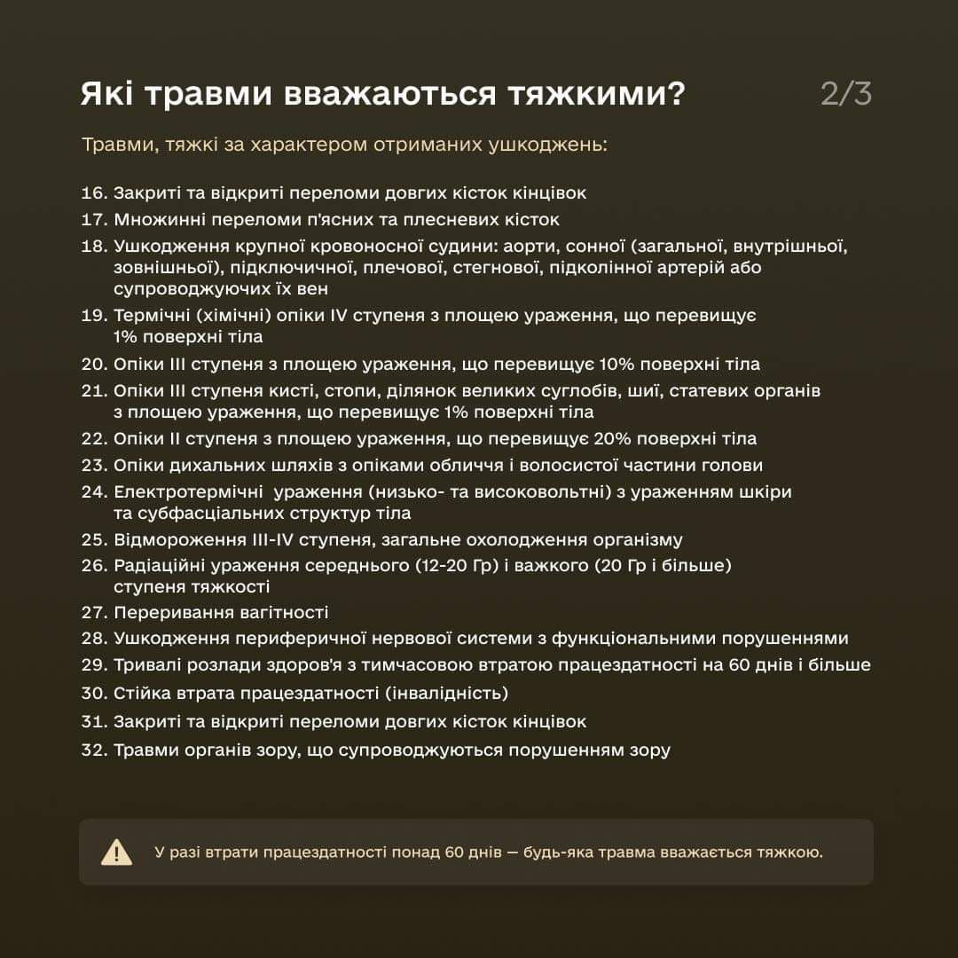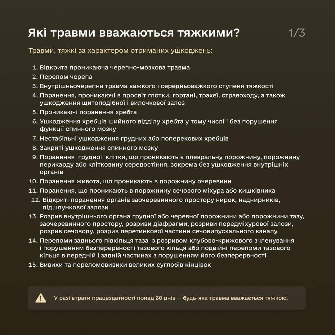 В случае потери трудоспособности более 60 дней – любая травма считается тяжелой. Установление степени тяжести травм не относится к полномочиям штатных и внештатных ВВК,