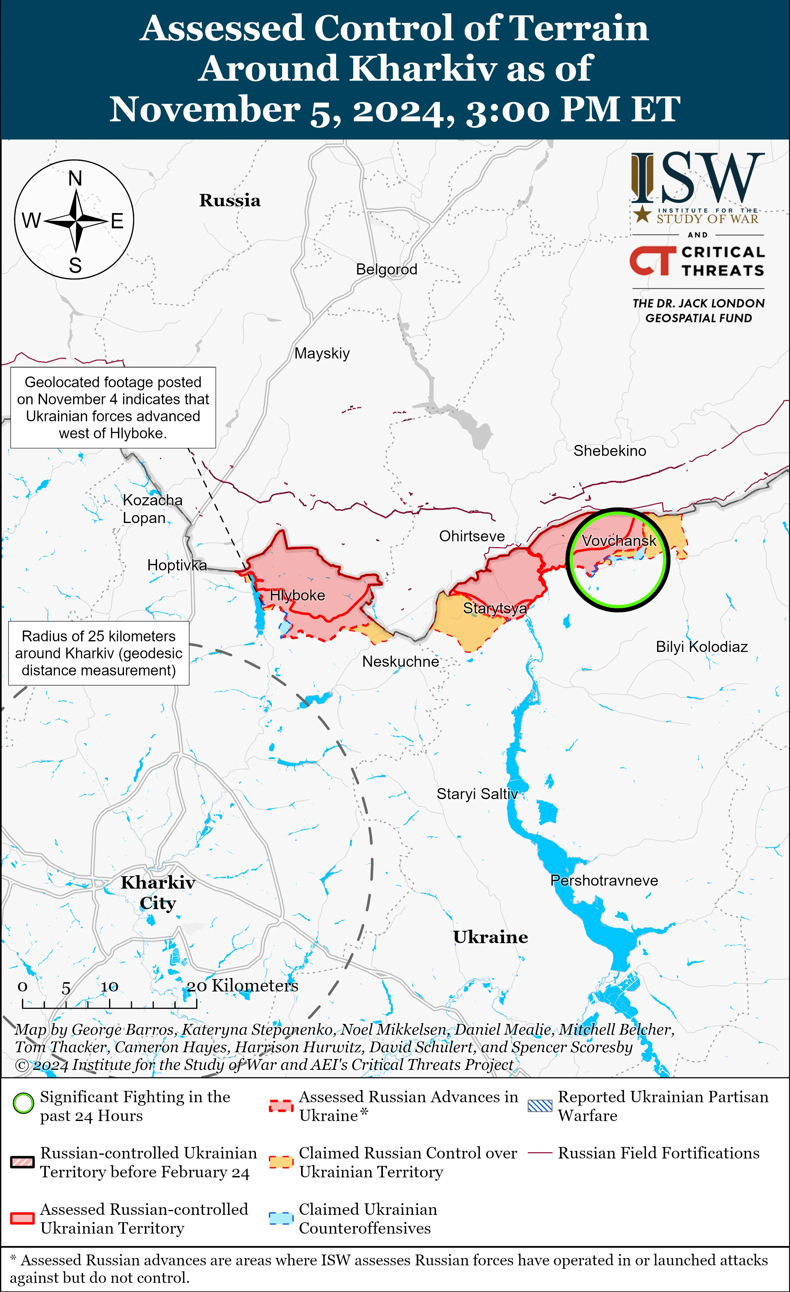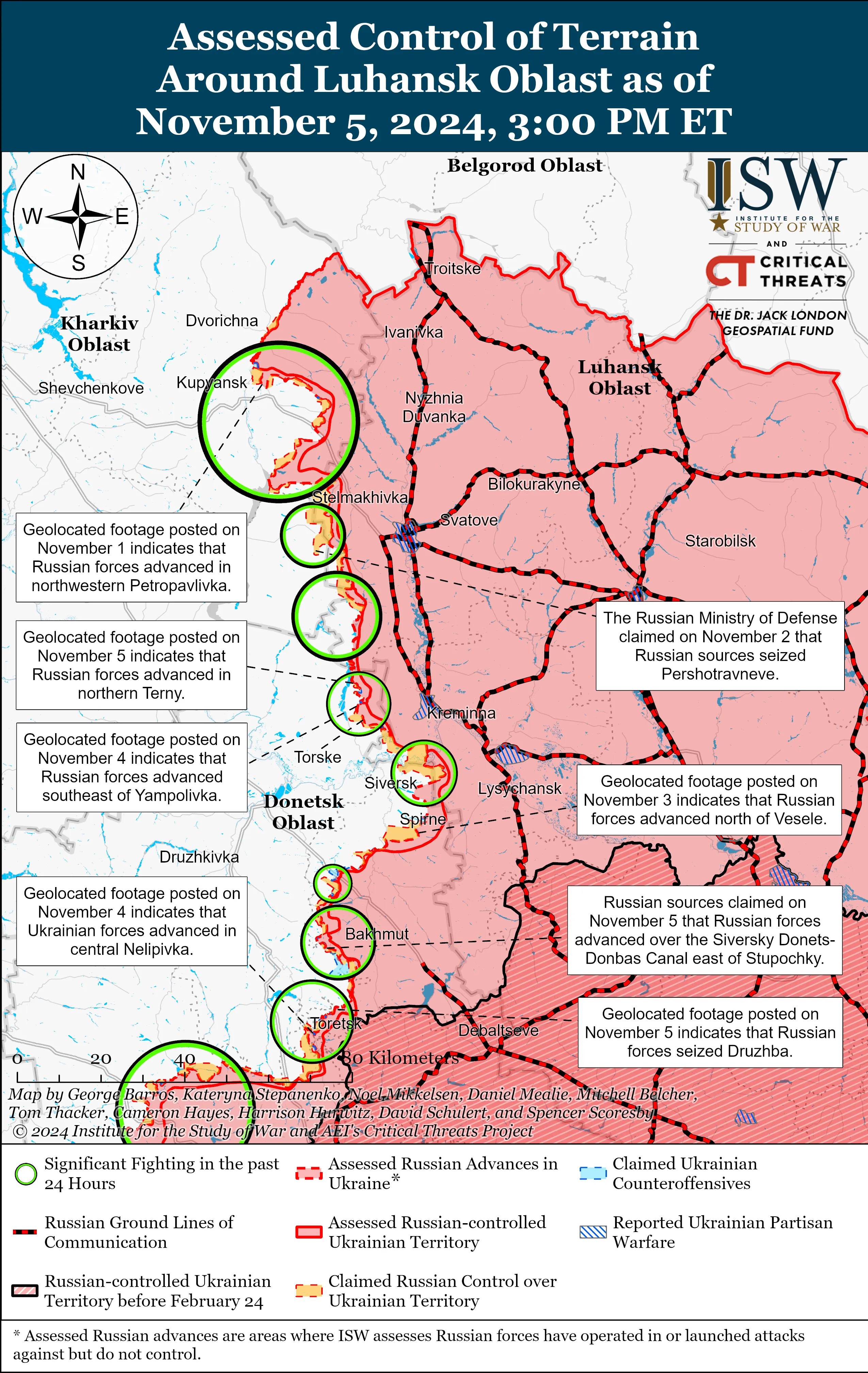24 Канал со ссылкой на аналитиков Института изучения войны (ISW) рассказывает о ситуации на фронте по состоянию на 6 ноября. Актуально о том, как изменилась линия фронта за сутки.