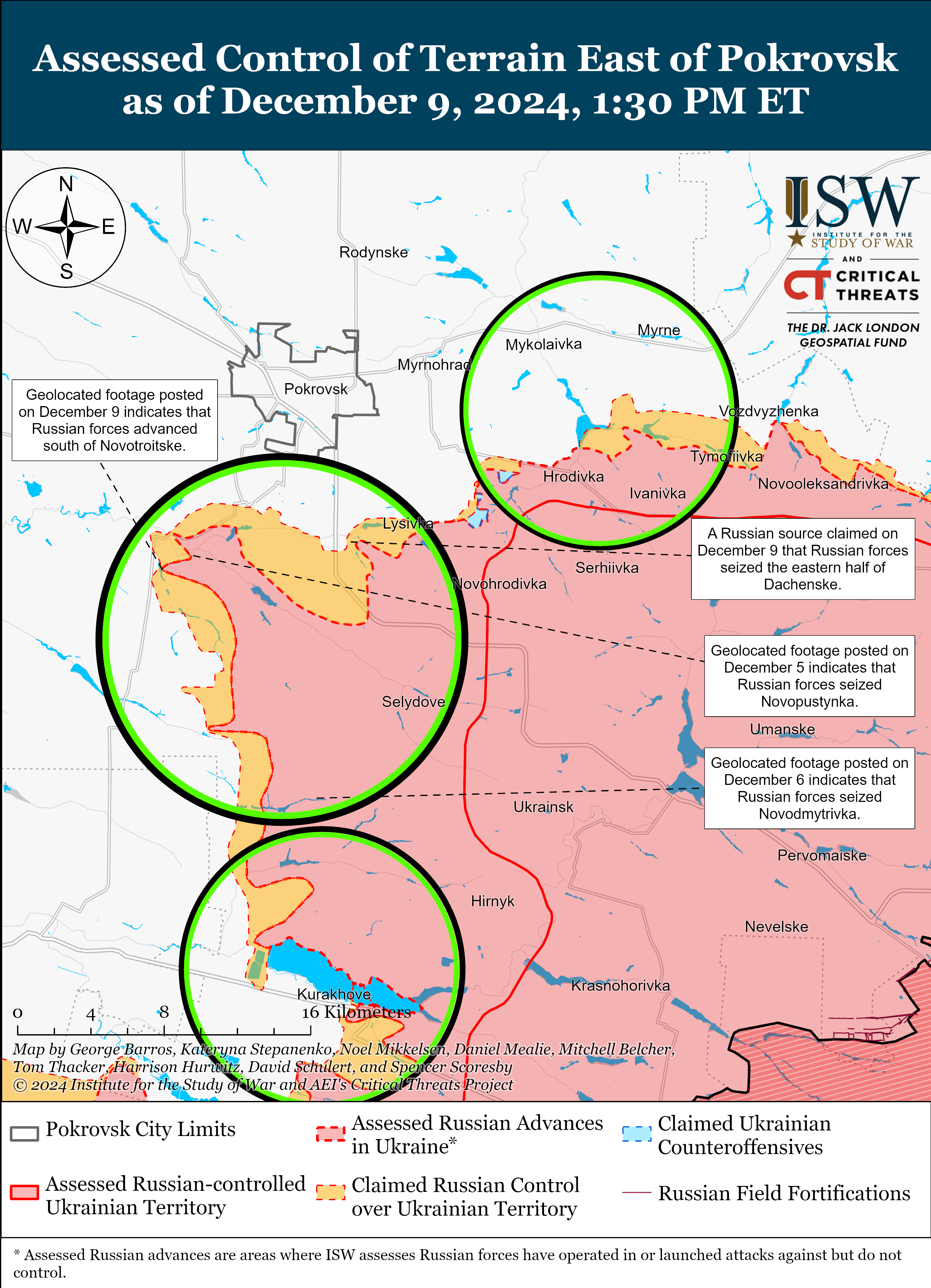 Согласно геолокационным кадрам, ISW утверждает, что российские войска недавно продвинулись в направлении Покровска, в частности: