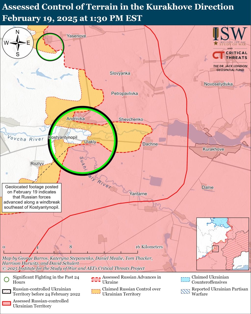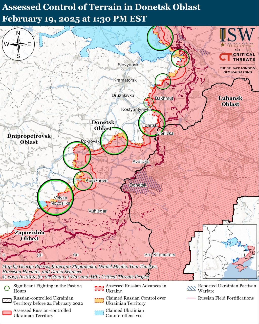 О событиях на фронте за 19 февраля 24 Канал сообщает со ссылкой на ISW.