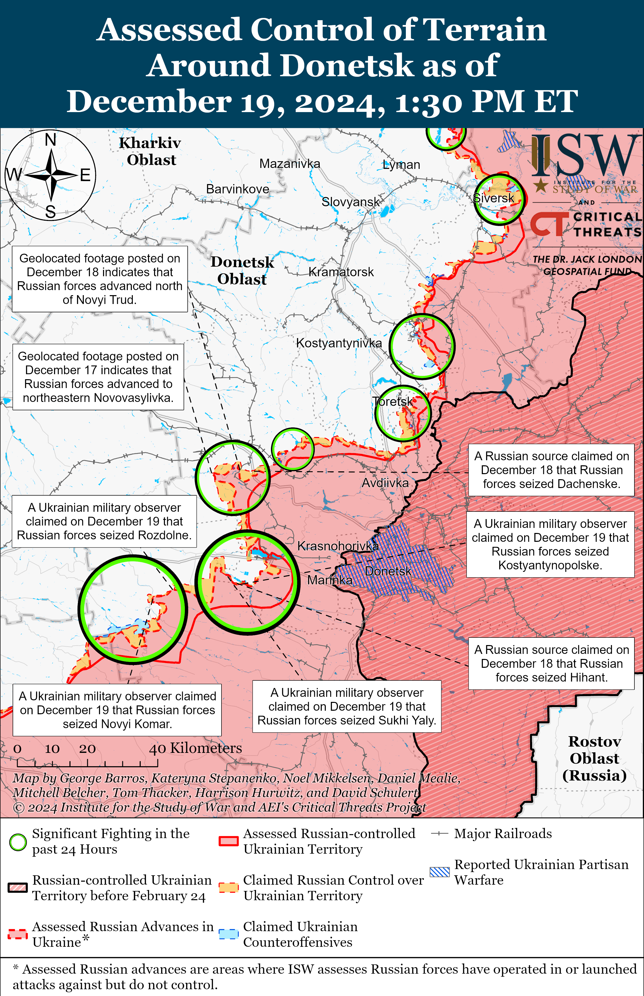 Карты боевых действий войны в Украине и России 19 декабря / Иллюстрации ISW