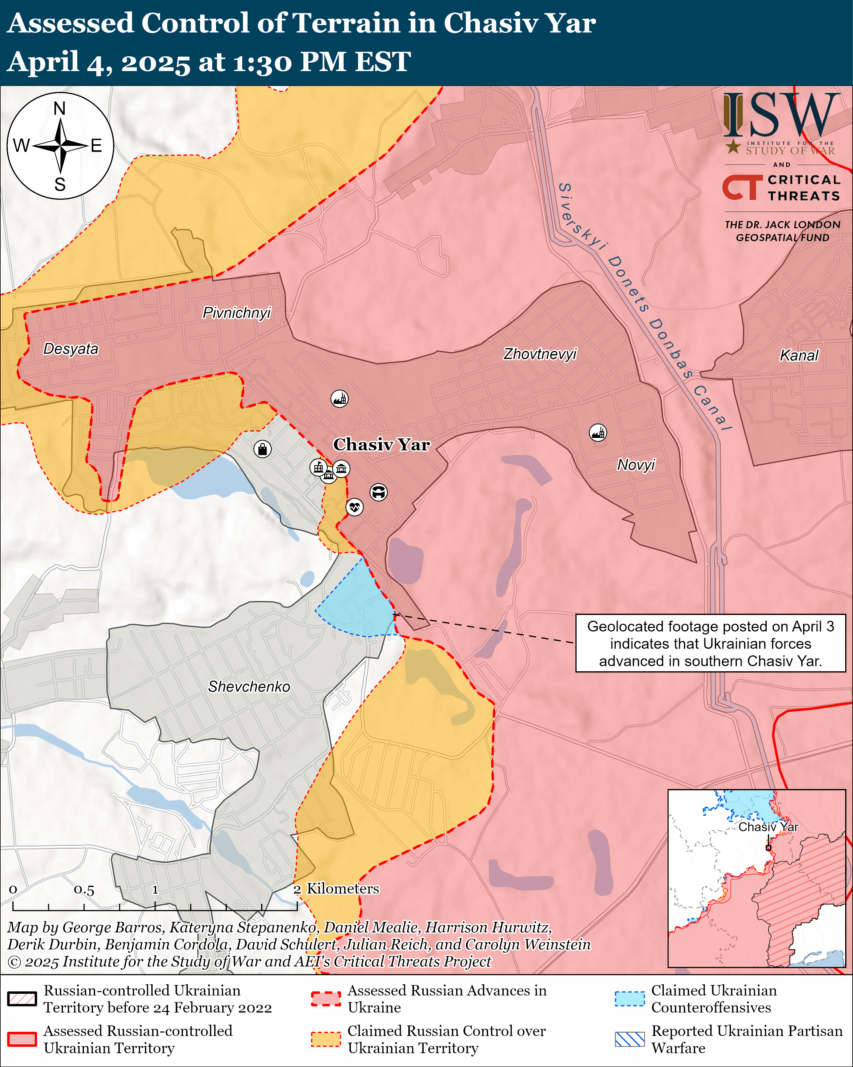 - Недавно украинские войска продвинулись вперед в направлении Часового Яра.