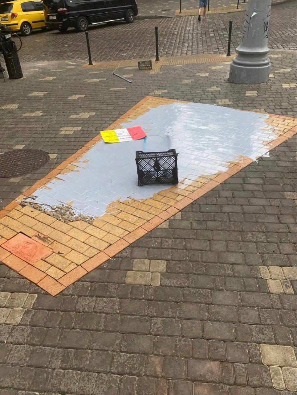 Памятник Пушкину, установленный в 2013 году, буквально исчез с лица земли. Одесситы закрасили инсталляцию на асфальте.