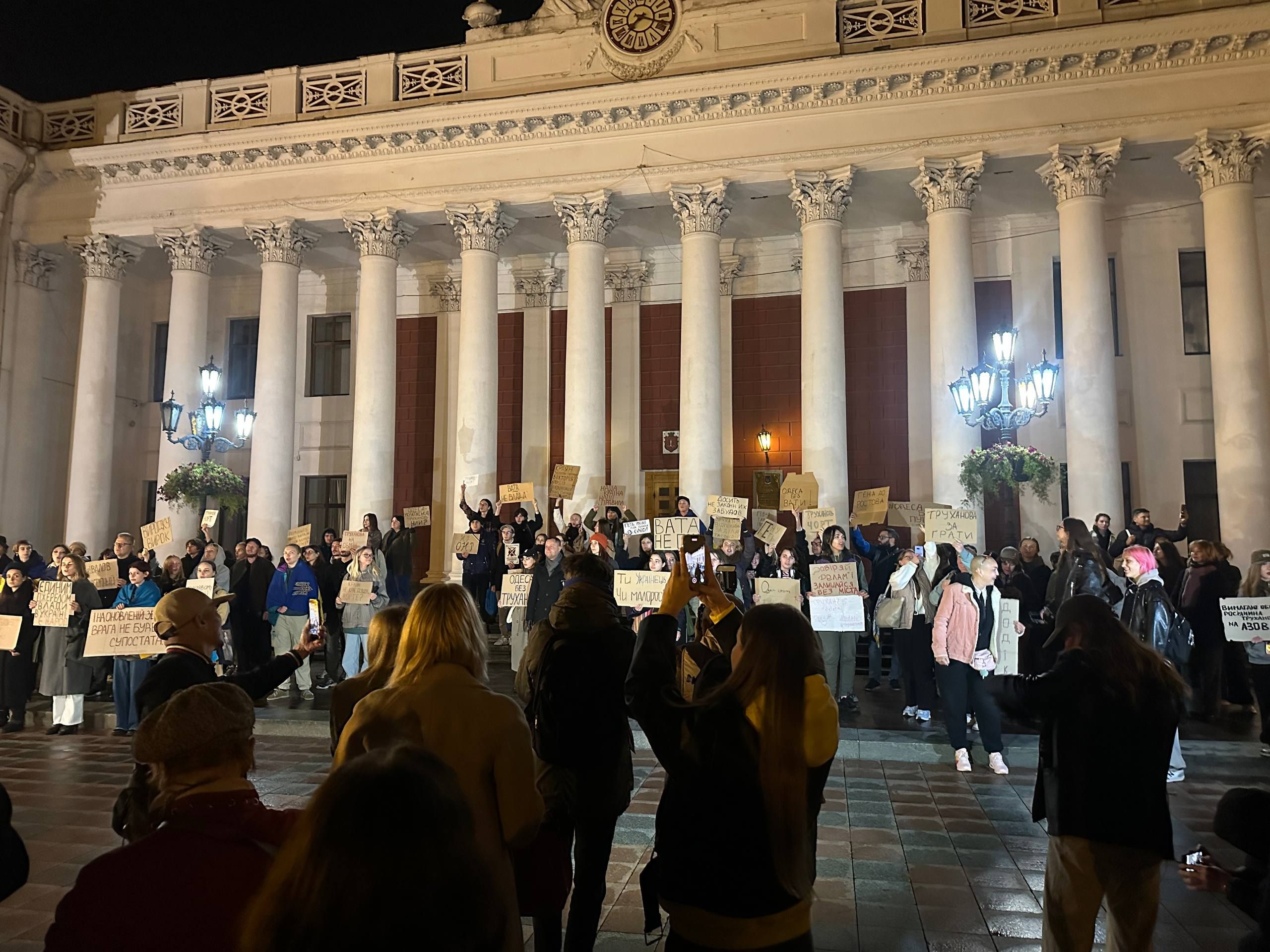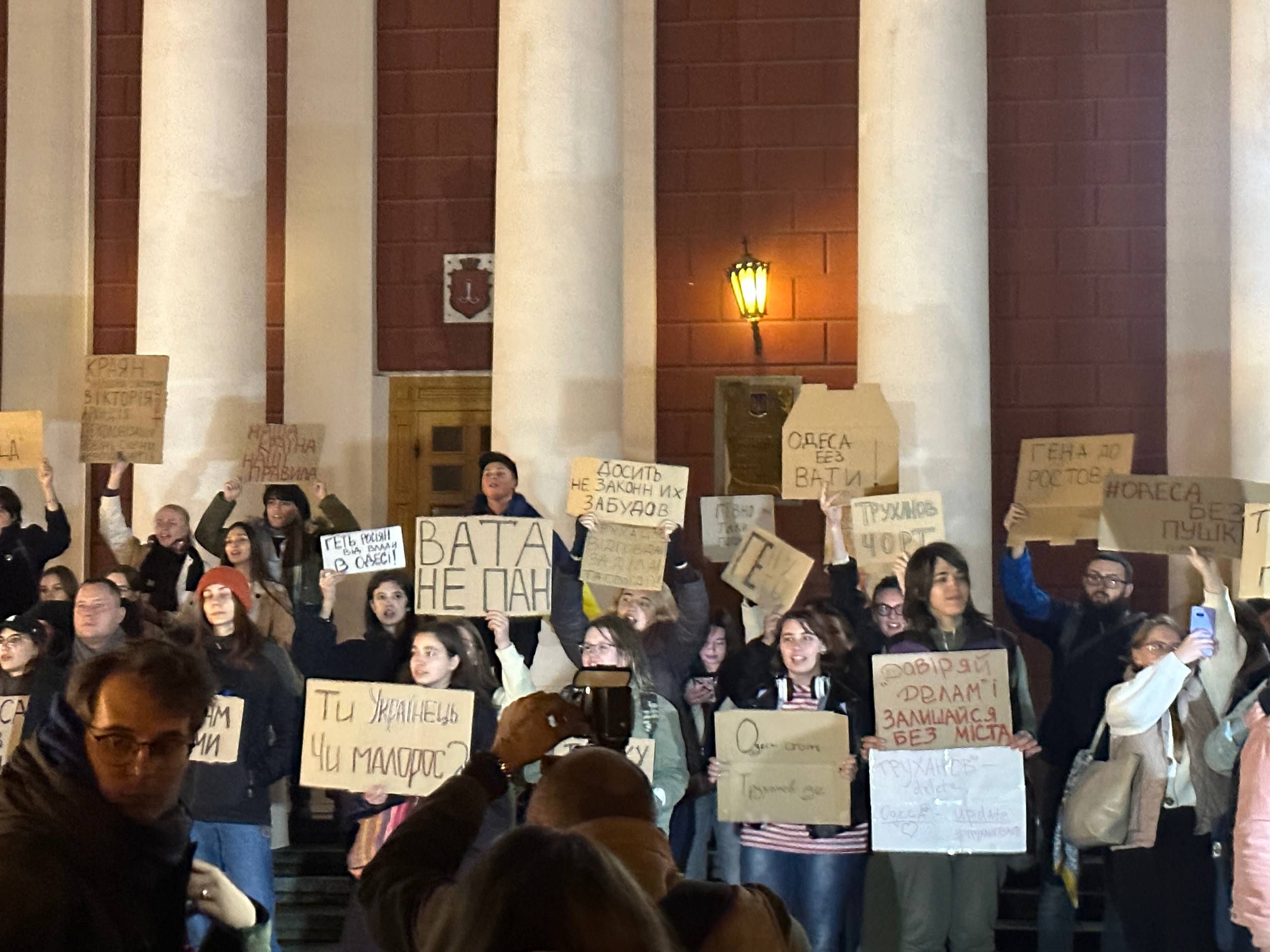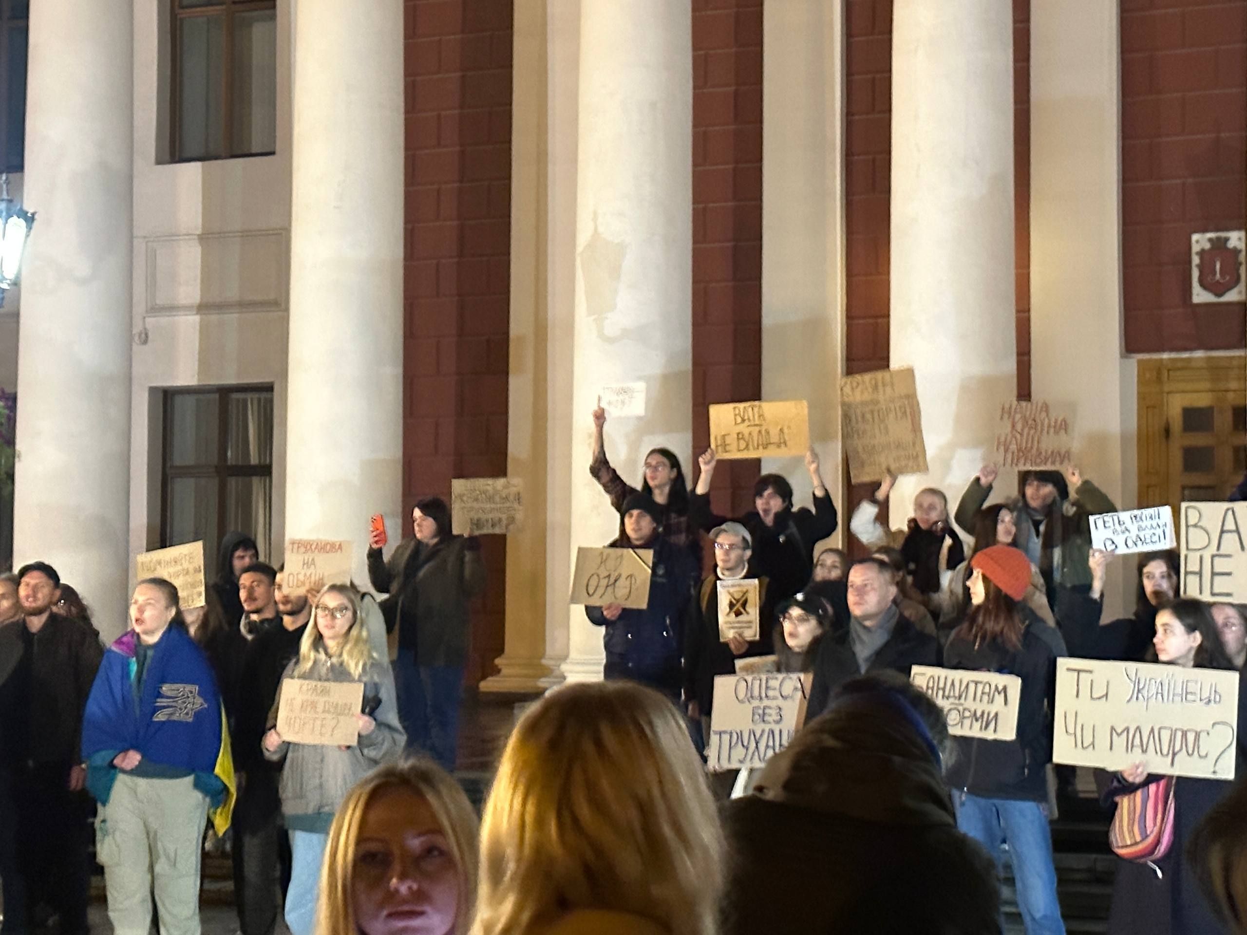 В центре Одессы вечером собрались сотни митингующих. Они пришли к мэрии и требовали не только отстранения действующего городского голову Труханова от власти, но и привлечения его к уголовной ответственности за все, что он сделал во время своего правления.