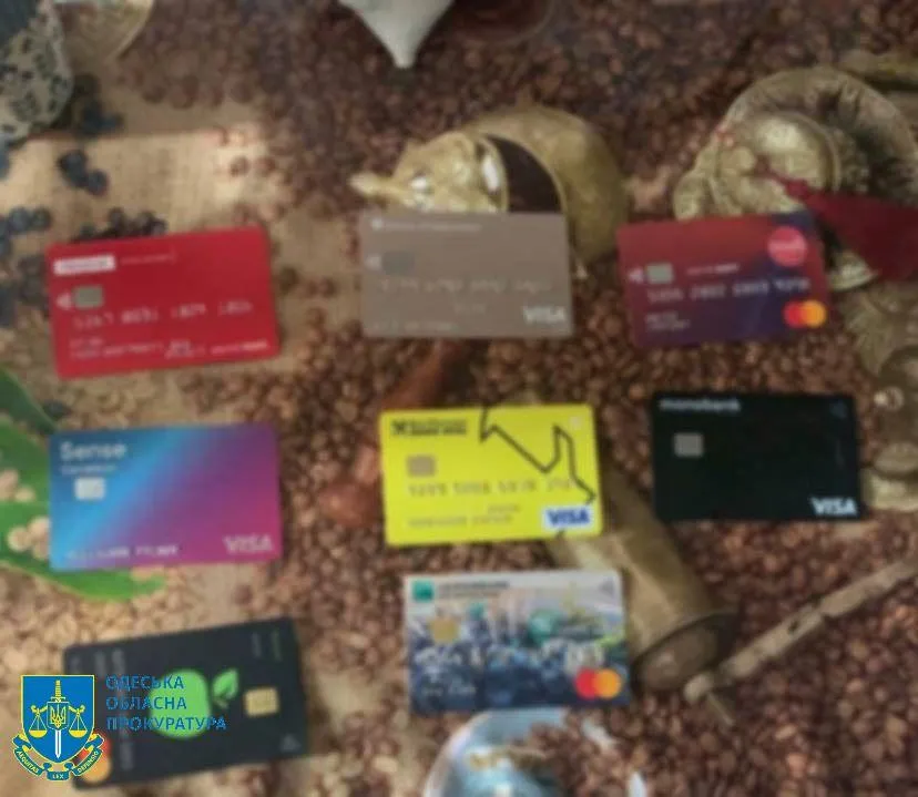 Банковские карты, которые нашли в ходе обысков / Фото Одесская областная прокуратура