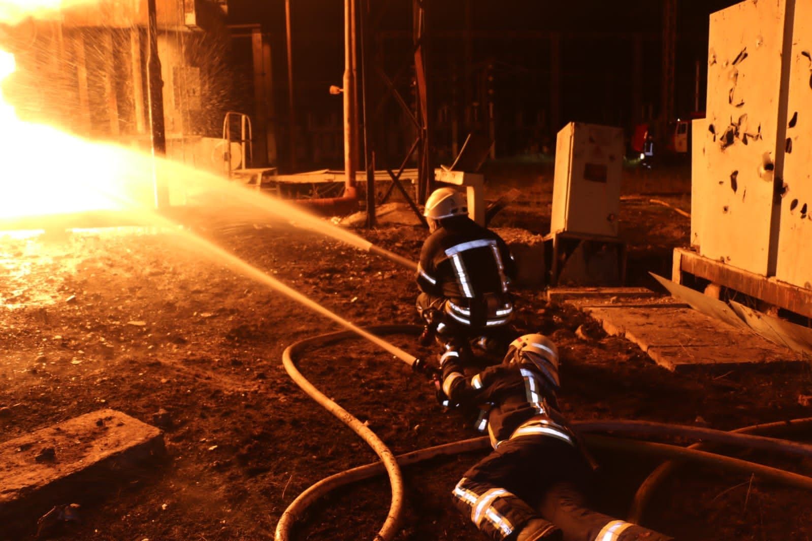 После удара там вспыхнул пожар, который сотрудники ГСЧС сейчас тушат. Президент Владимир Зеленский после обстрела опубликовал видео, на котором видны электроопоры, админздания, техника спасателей и огонь.