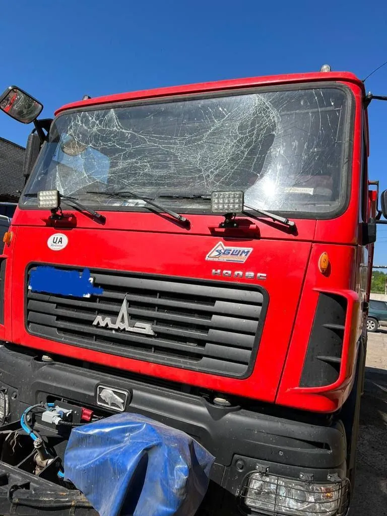 В грузовике с резингрузом ударной волной повредило лобовое стекло / Фото с телеграма Сергея Гайдая