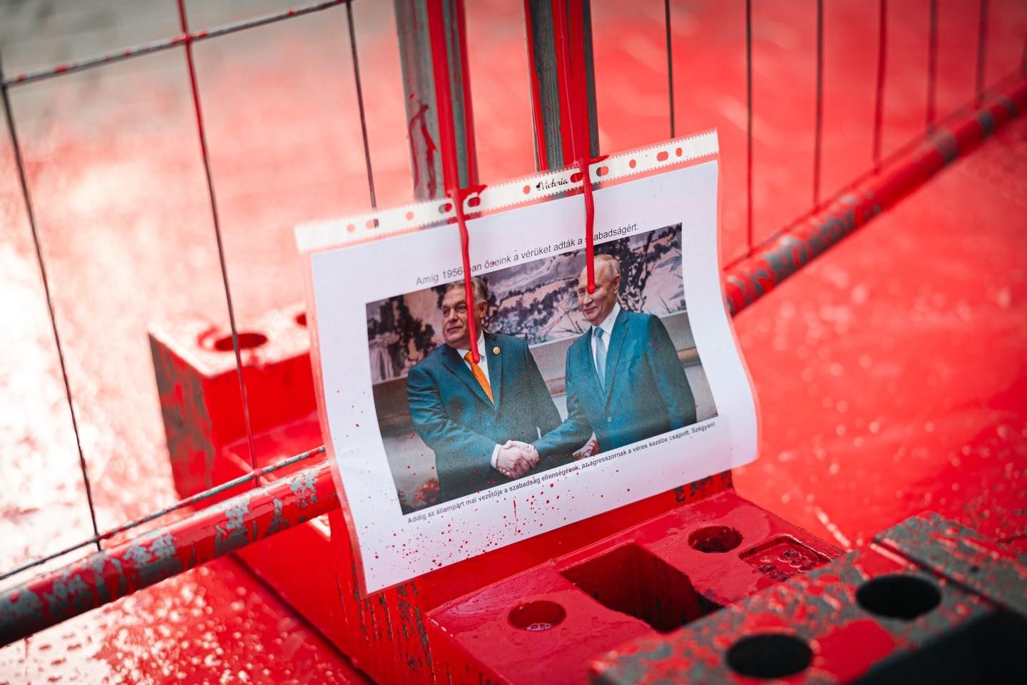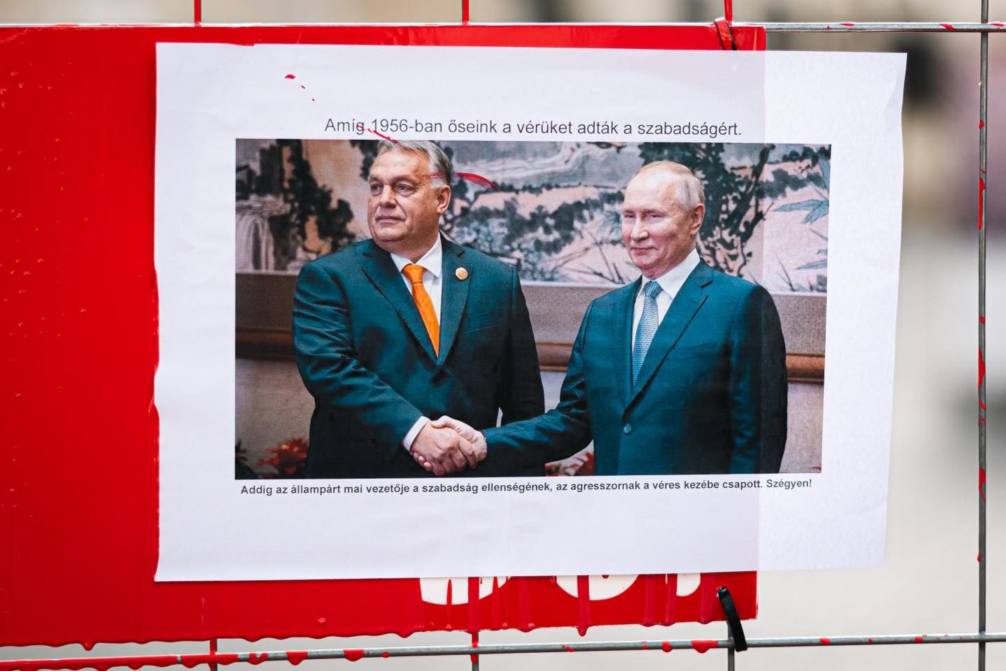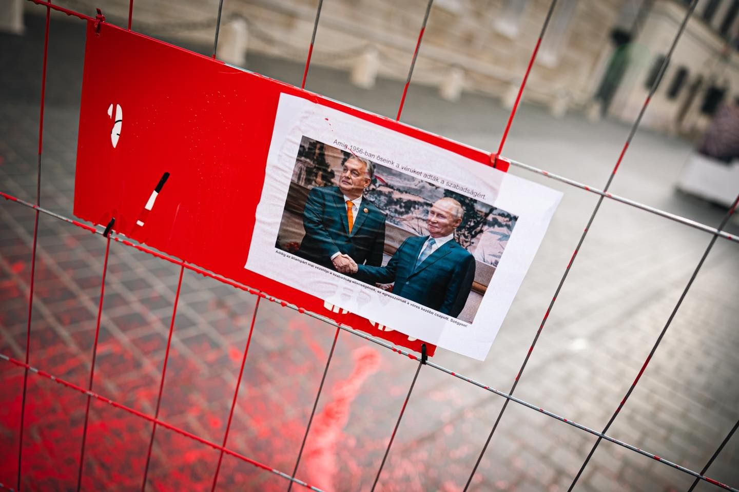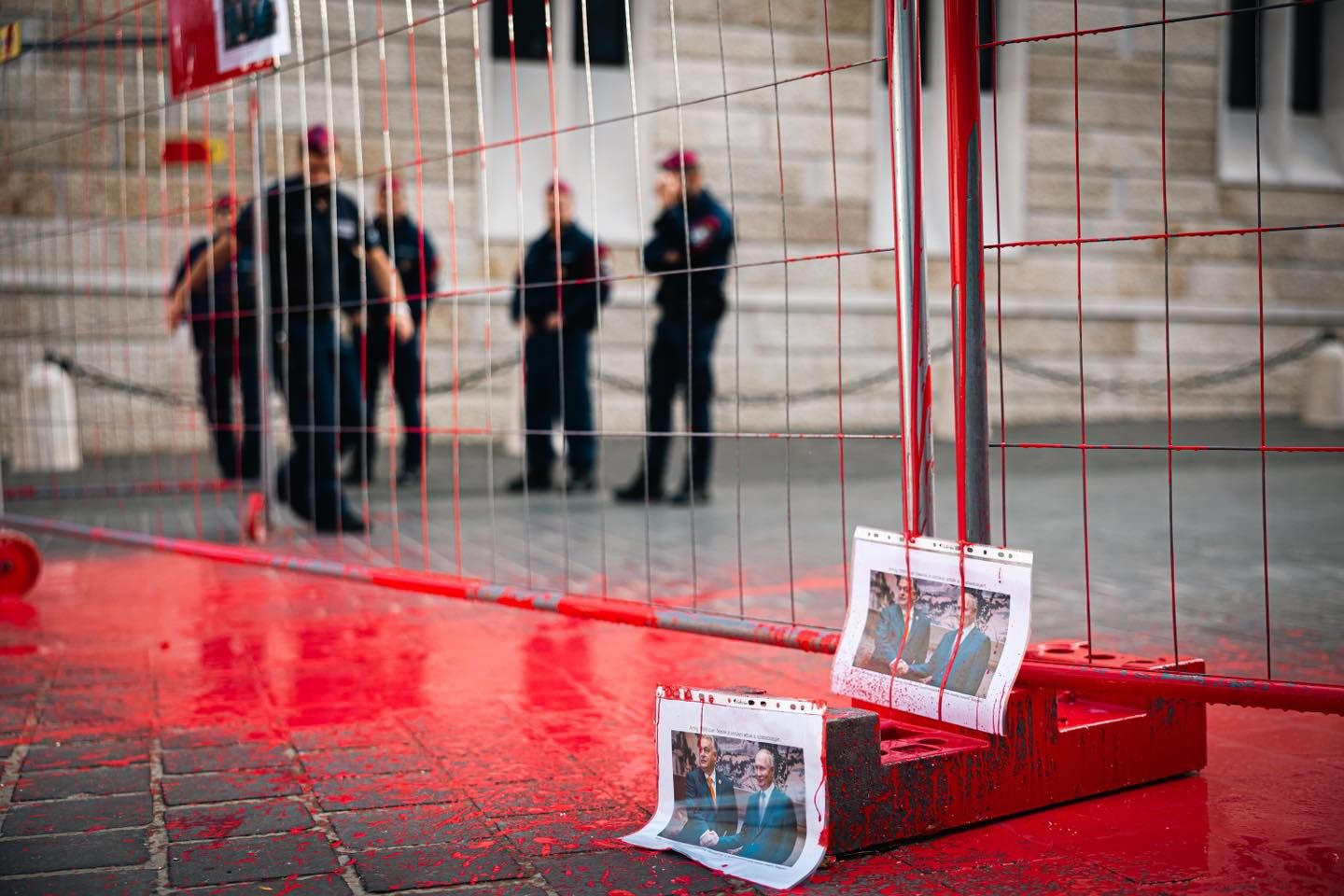 В понедельник, 23 сентября, четверо депутатов оппозиционной парламентской фракции "Моментум" красной краской забор возле офиса премьер-министра Венгрии Виктора Орбана. Политическая сила заявила, что причиной этого является предательство и пренебрежение героев подавленной советскими войсками революции 1956 со стороны главы правительства.