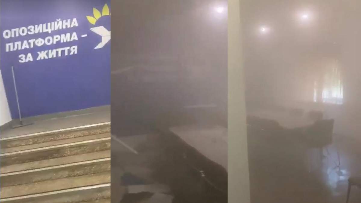 Смотрите видео из задымленного помещения офиса ОПЗЖ в Полтаве: