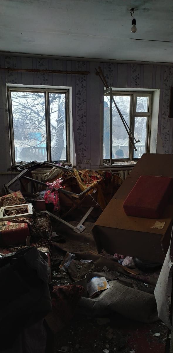 Российские захватчики повредили более 20 жилых домов и 9 хозяйственных построек. Взрывной волной повреждена местная гимназия. Также задело линию электропередач.