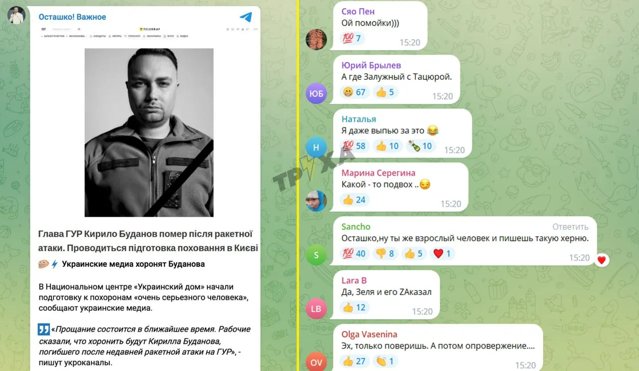 Фейк россиян о гибели Буданова / Скриншот из телеграма