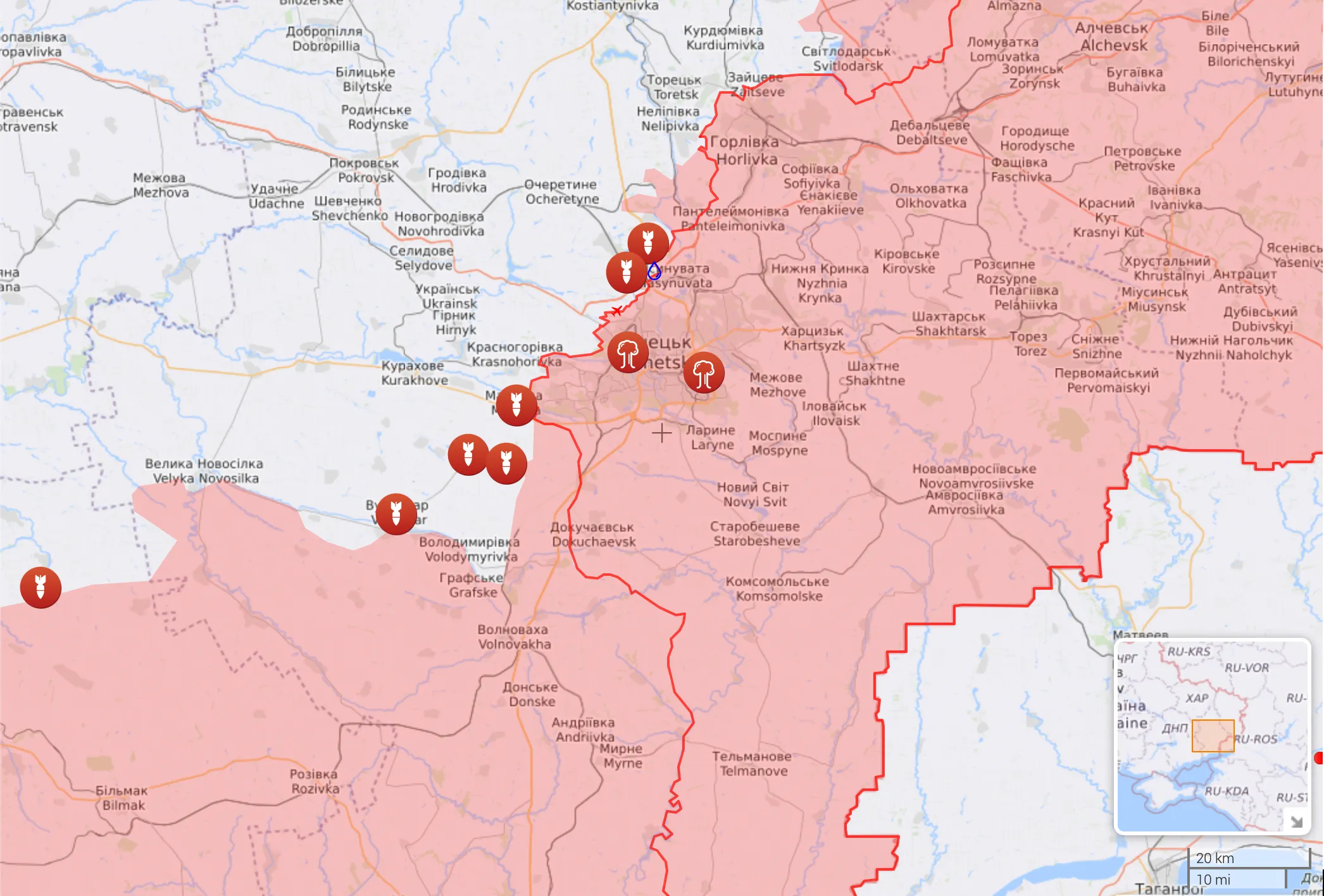 Актуальная карта боевых действий на Бахмутском направлении / Скриншот liveuamap