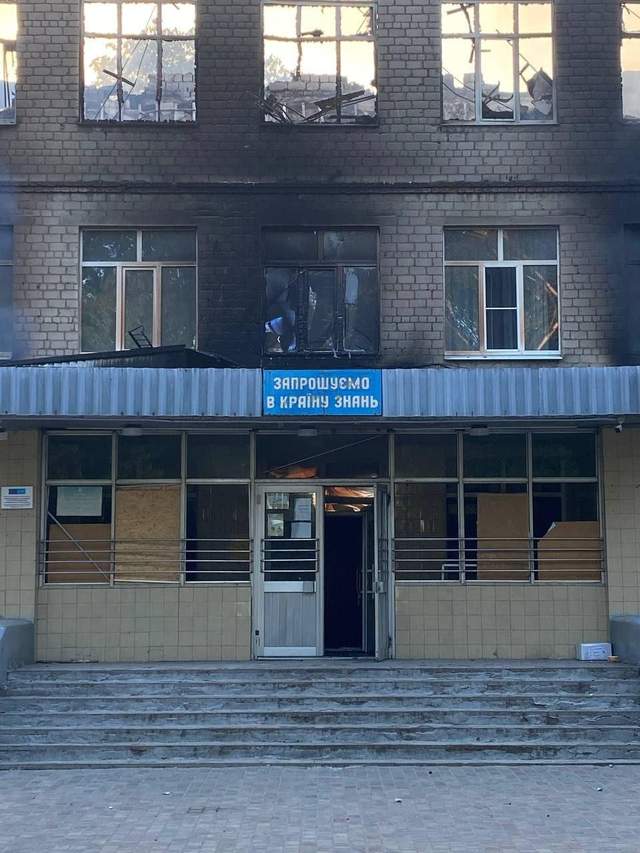 Авдеевка. Школа номер 6. Сегодня ночью оккупанты обстреляли ее снарядами РСЗО "Град" с магниевым зарядом. Это уже третья школа, уничтоженная россиянами в Авдеевке. Всего же в Донецкой области оккупанты разрушили около двух сотен школ,