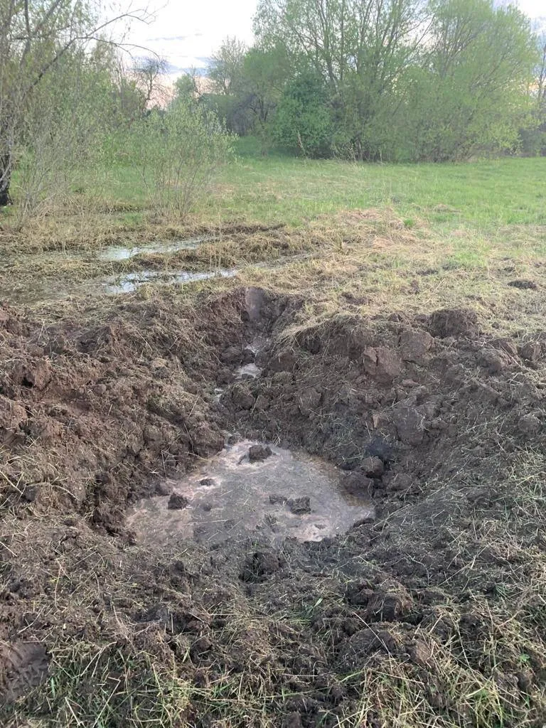 На окраине села обнаружили 5 разрывов в результате разрыва снаряда / Фото Госпогранслужба