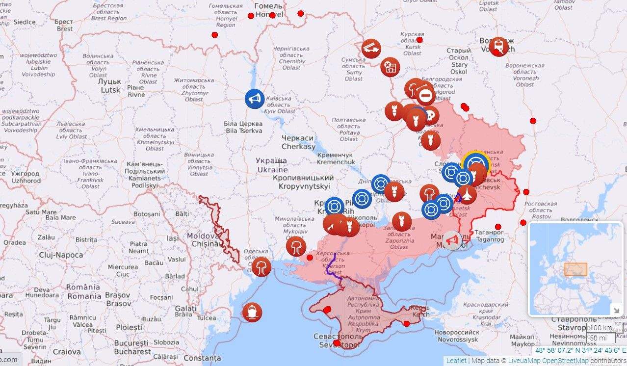 Карта боевых действий на 2 мая / Скриншот Liveuamap
