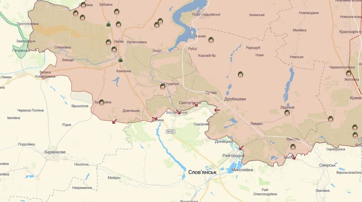 Российские войска наступают на Славянском направлении / Скриншот карты боевых действий