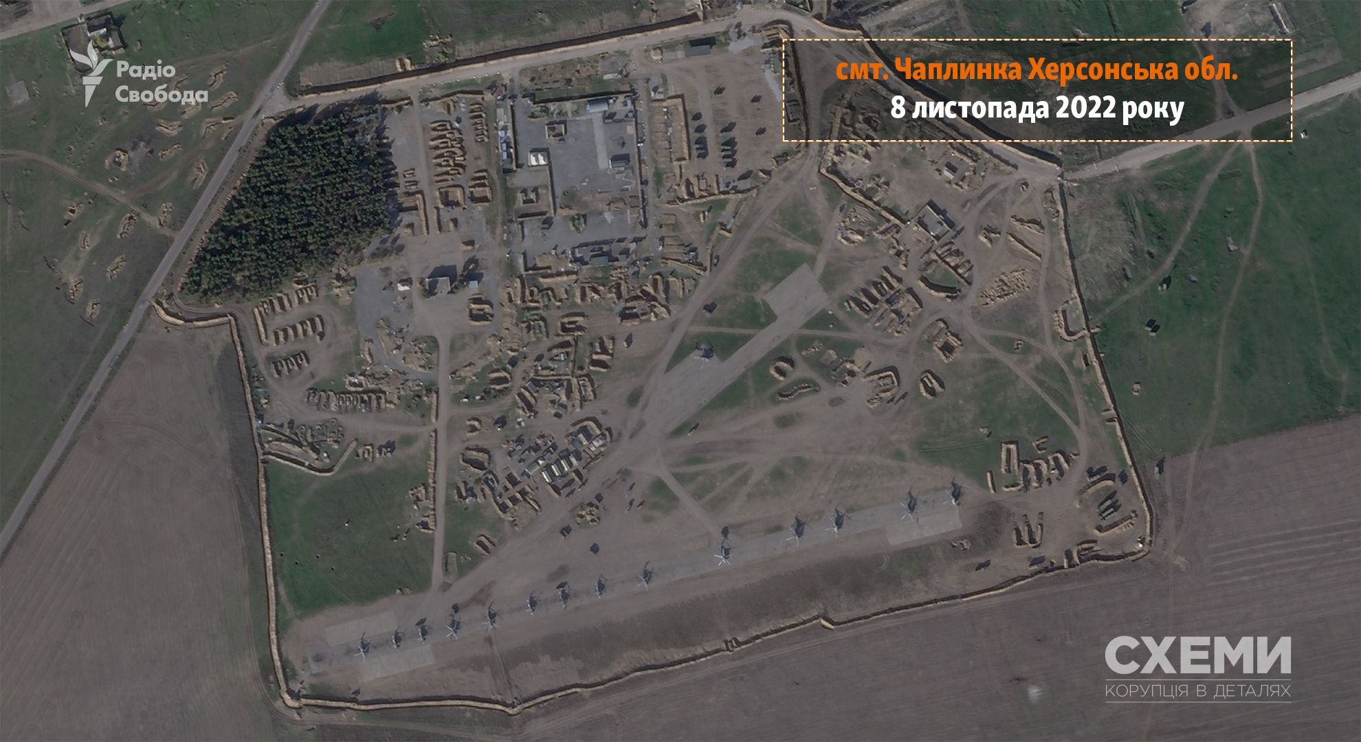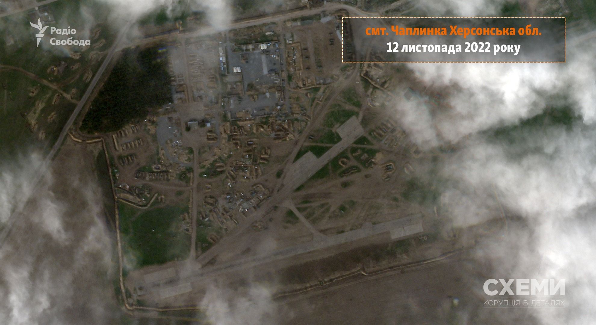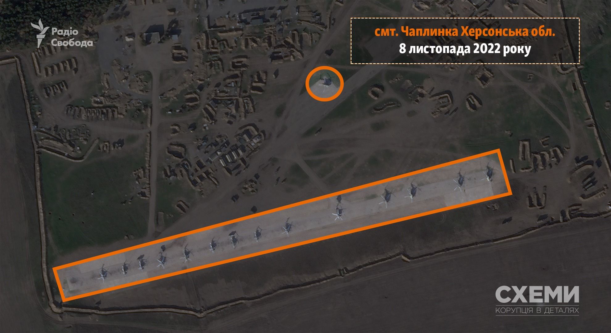 То, что Россия передислоцировала вертолеты с аэродрома в Чаплинке, подтверждают спутниковые снимки Planet Labs. Для сравнения были взяты фото за 8 и 12 ноября 2022 года.