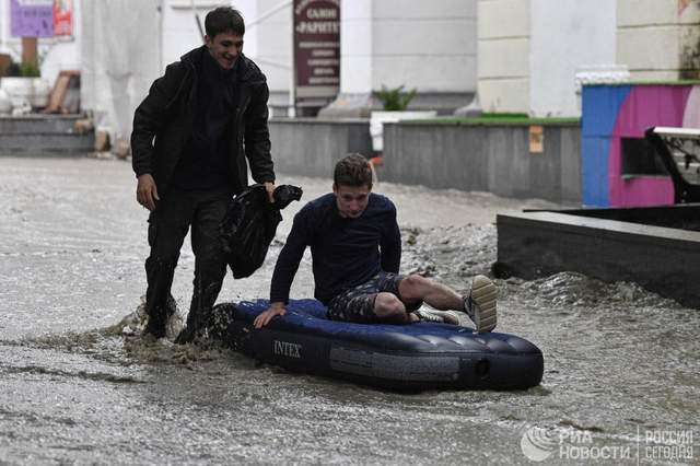 - Всего лишь за 6 часов в городе выпала месячная норма осадков – 42 миллиметра. Реки вышли из берегов, центр затоплен, а осадки не прекращаются.