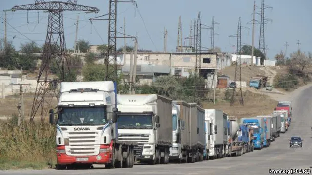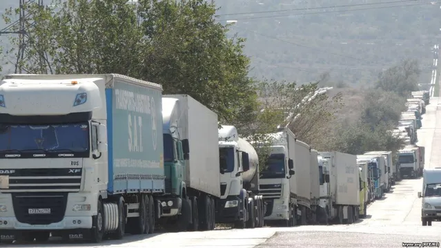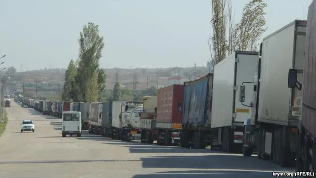 На Керченской паромной переправе скопилось почти 2000 автомобилей и 110 автобусов. Припаркованные на дорогах грузовики препятствуют движению автотранспорта – фуры заняли почти полностью правую полосу.