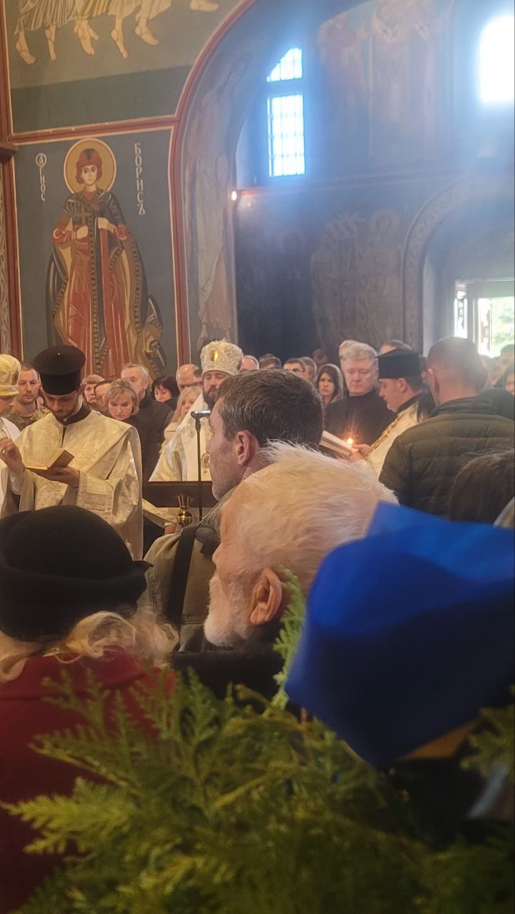 Отдать дань уважения погибшему военному пришел и бывший президент Петр Порошенко вместе со своей женой.