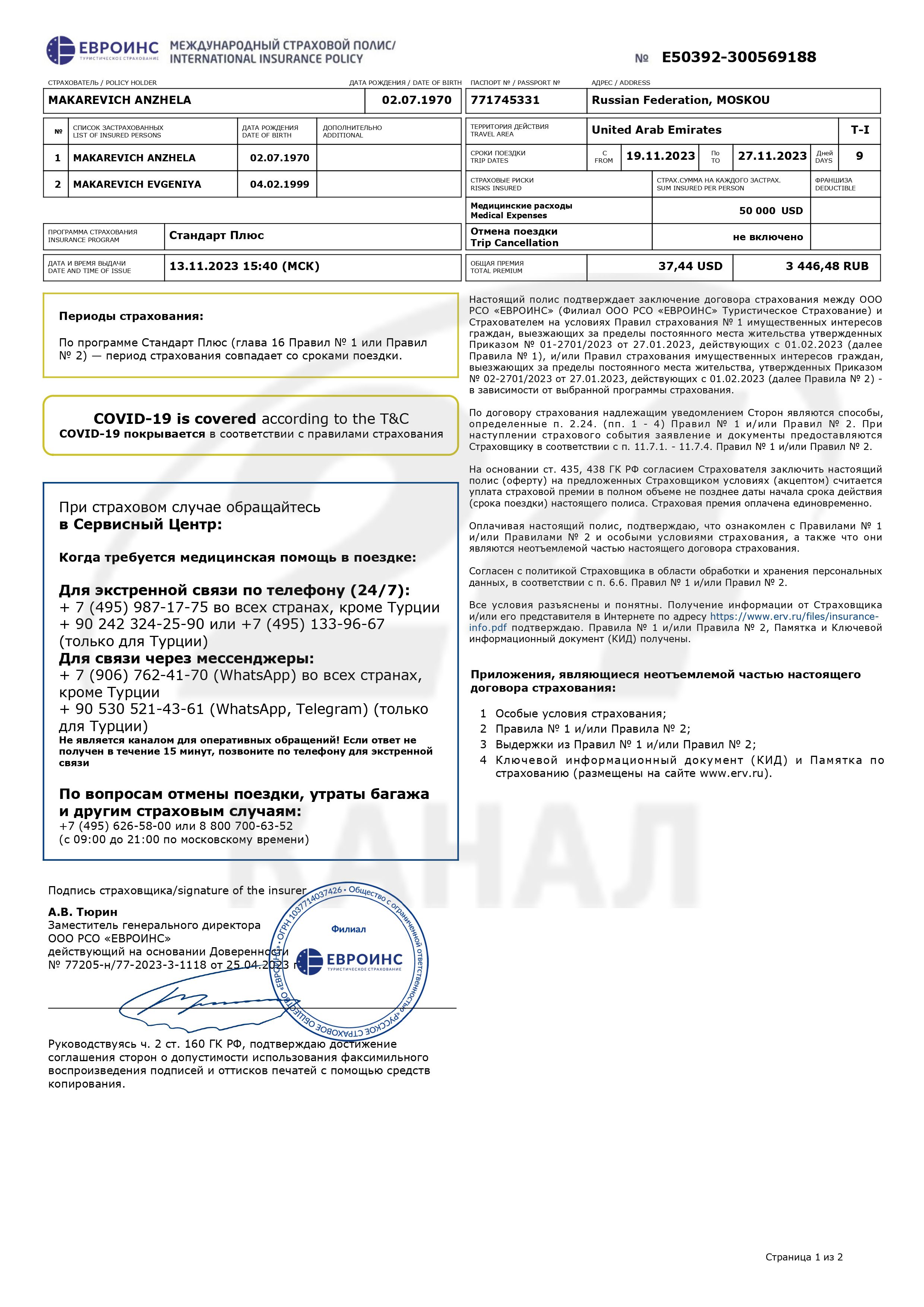 Трансферный ваучер и страховой полис семьи Макаревича: смотрите фото