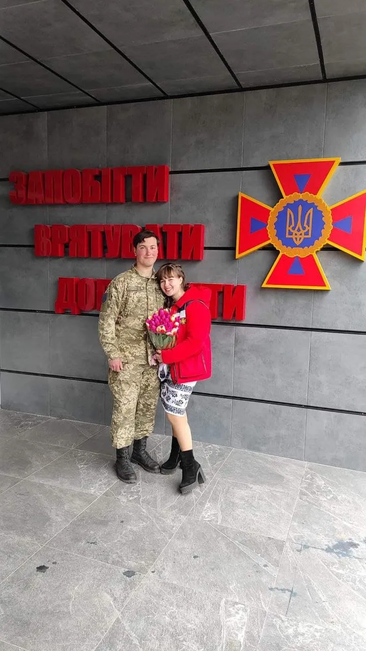 Молодожены заключили брак в Чернигове. По законам военного времени факт заключения брака засвидетельствовал начальник Главного управления ГСЧС.