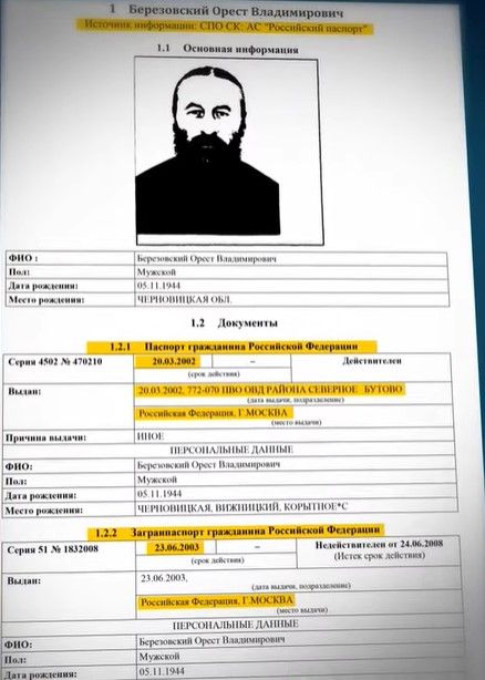 Журналисты-расследователи установили, что согласно выписке из системы "Роспаспорт" Онуфрий несколько раз получал российские паспорта: