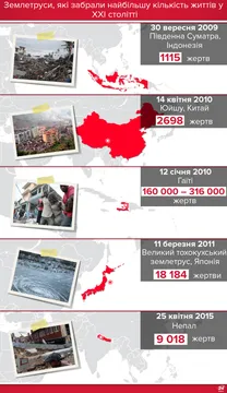 Еще два серьезных землетрясения произошли в 2010-2011 годах: первое на Гаити унесло жизни от 160 до 316 тысяч человек, а Большое тохокунское землетрясение у берегов Японии вызвало цунами и гибель 18 184 человек. Кстати именно оно и спровоцировало аварию на японской атомной электростанции "Фукусима".