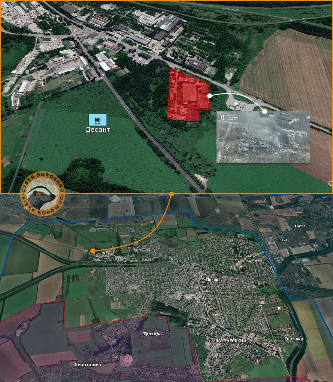 Интересно, что OSINT-аналитикам проекта "КиберБорошно" удалось геолокировать все удары в видео ГУР по операции в Покровске. По данным экспертов, все действия происходят на территории завода "Электродвигатель" в северо-западной части Покровска.