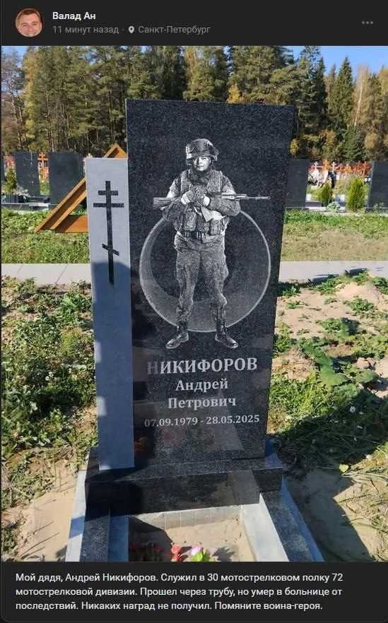 В сети появилось фото могилы Никифорова Андрея Петровича, который, вероятно, участвовал в операции "Труба" или "Поток" и умер из-за последствий.
