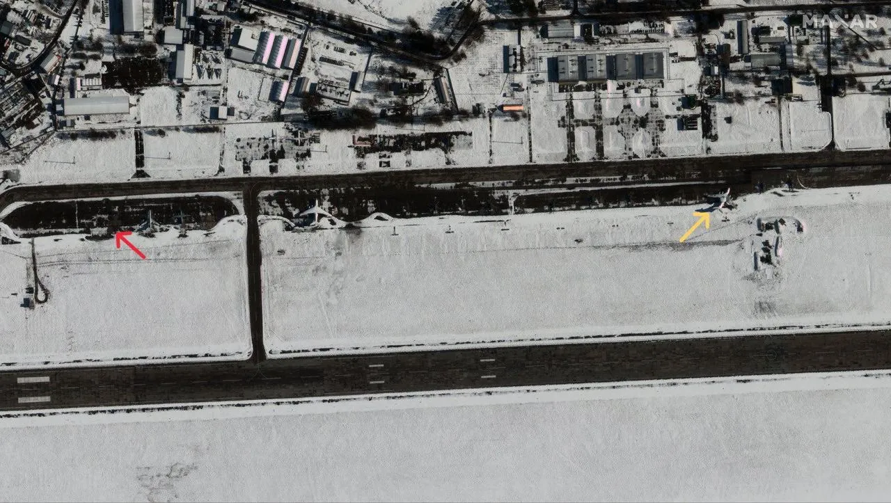 На месте красной стрелки мог стоять самолет А-50 / Фото Maxar