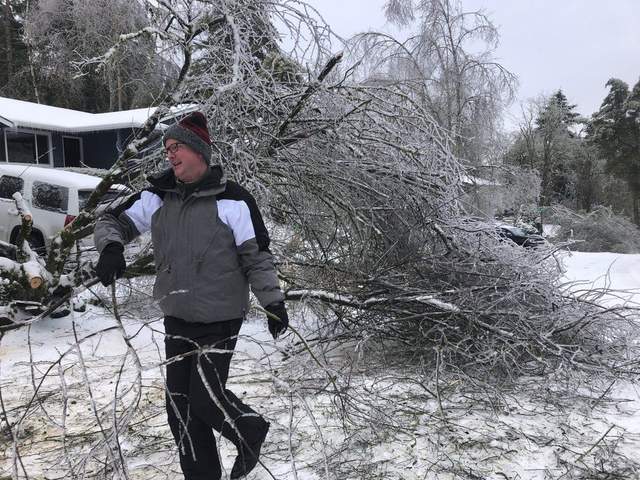 ► По состоянию на 13 февраля 1200 линий электропередач не работали. Все потому, что на них упали деревья, согнувшиеся под тяжестью льда.