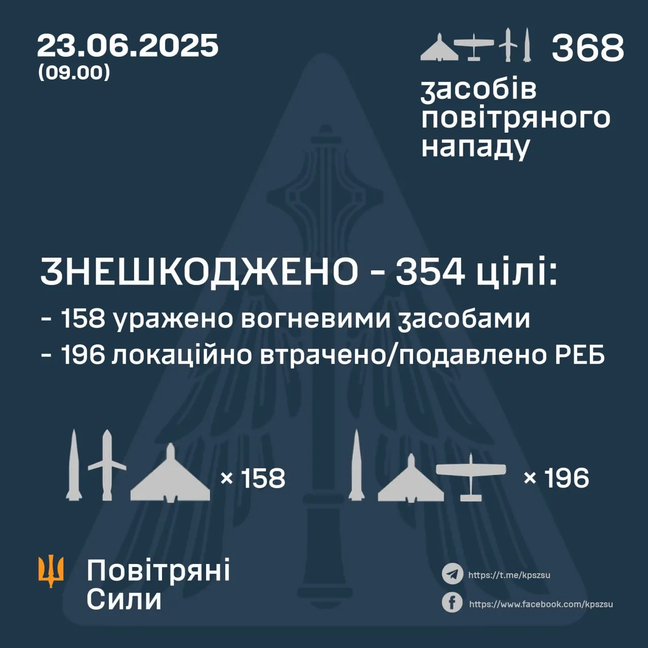 Сбиты цели на утро 23 июня / Инфографика Воздушных сил ВСУ