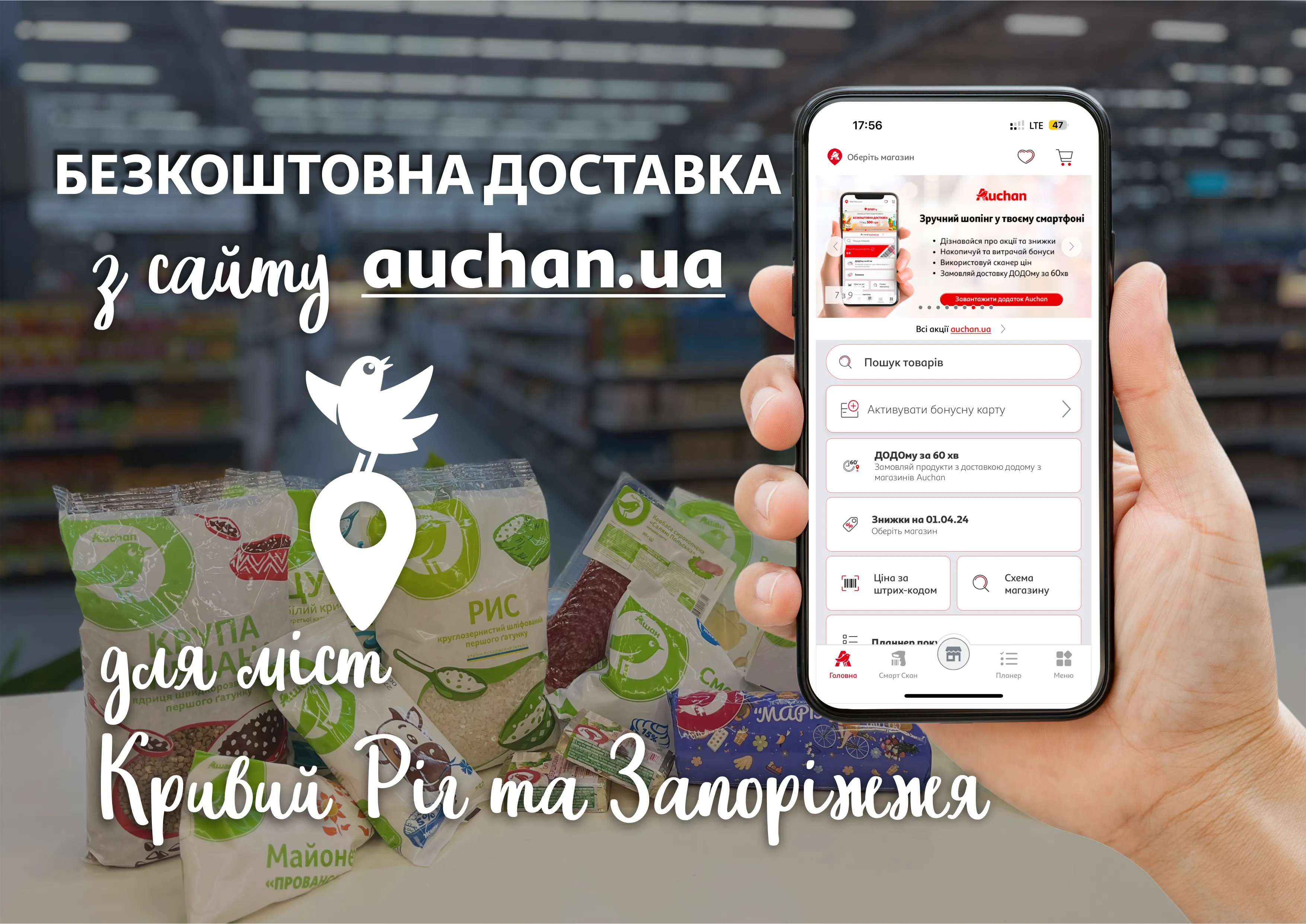 Для жителей Запорожья и Кривого Рога доступна бесплатная доставка заказов / Фото Auchan Украина