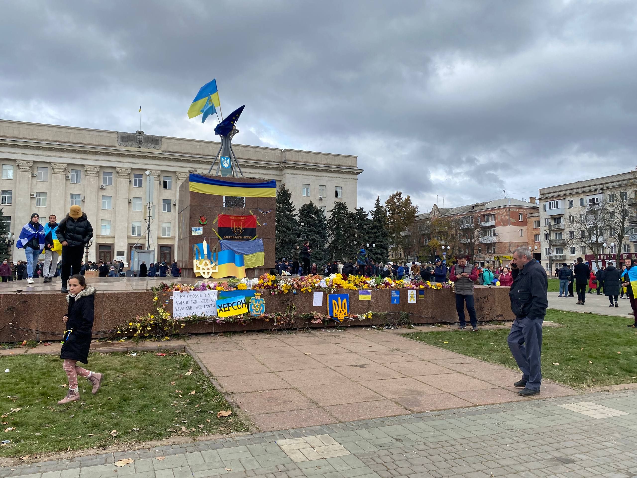 На улице смеркалось, день приближался к завершению, но в центре Херсона людей только становилось больше. Хоть город и был обесточен, люди не боялись темноты. Они свободны, их больше не напугать.