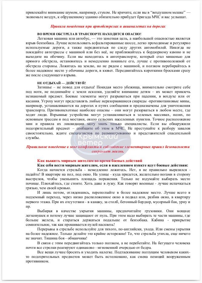 Жителям Крыма раздают советы на случай боевых действий / телеграм "Крымский ветер"