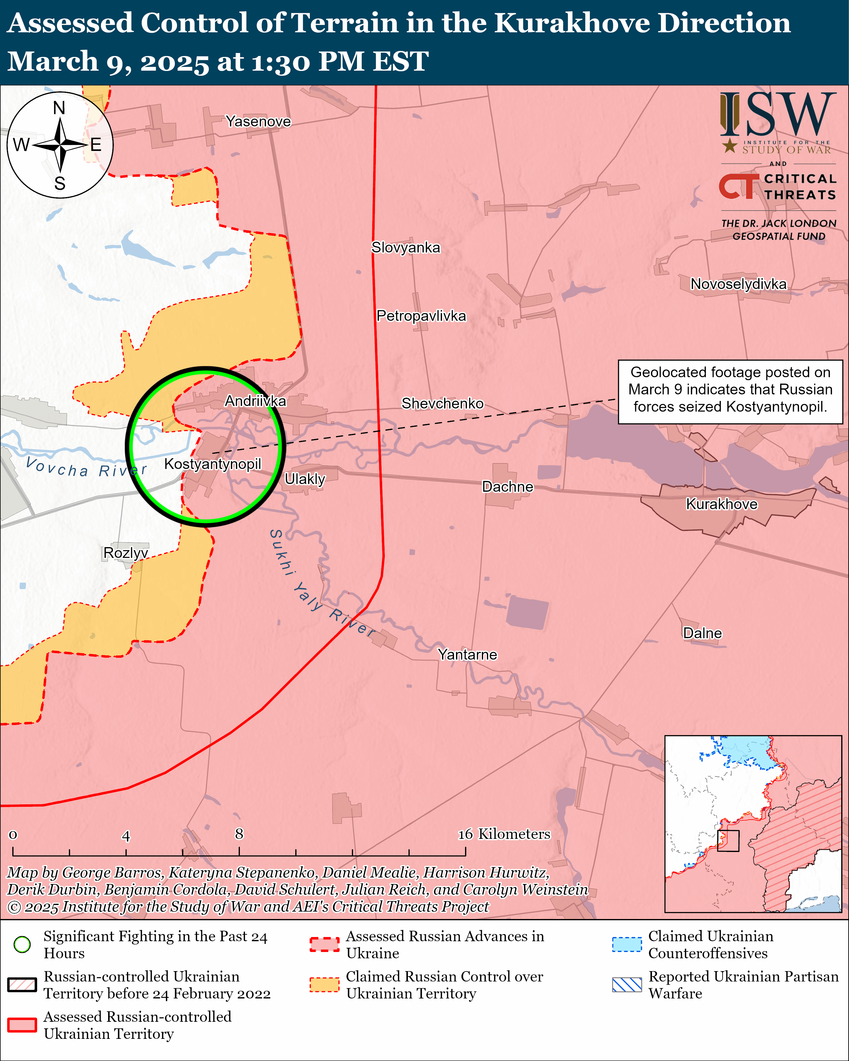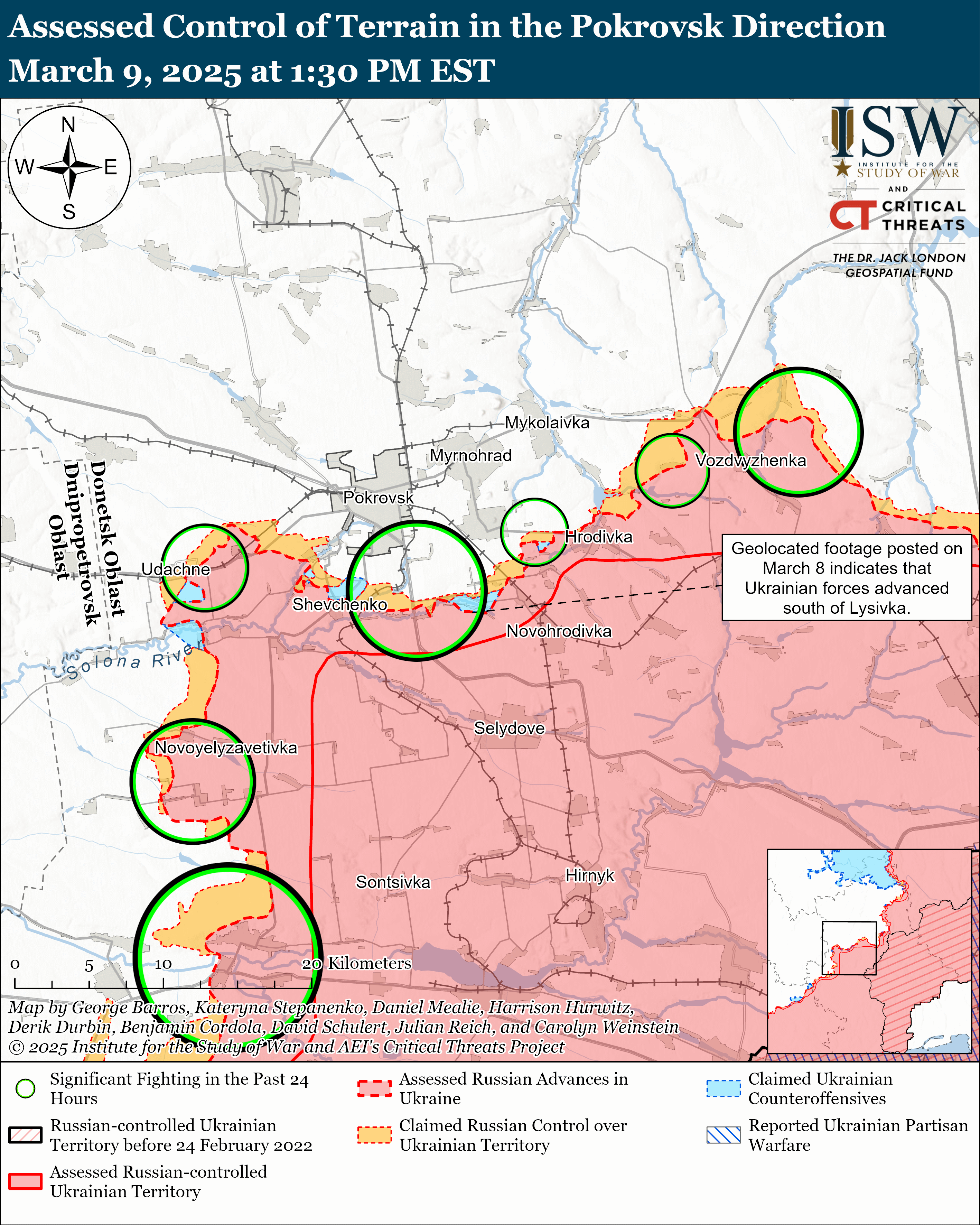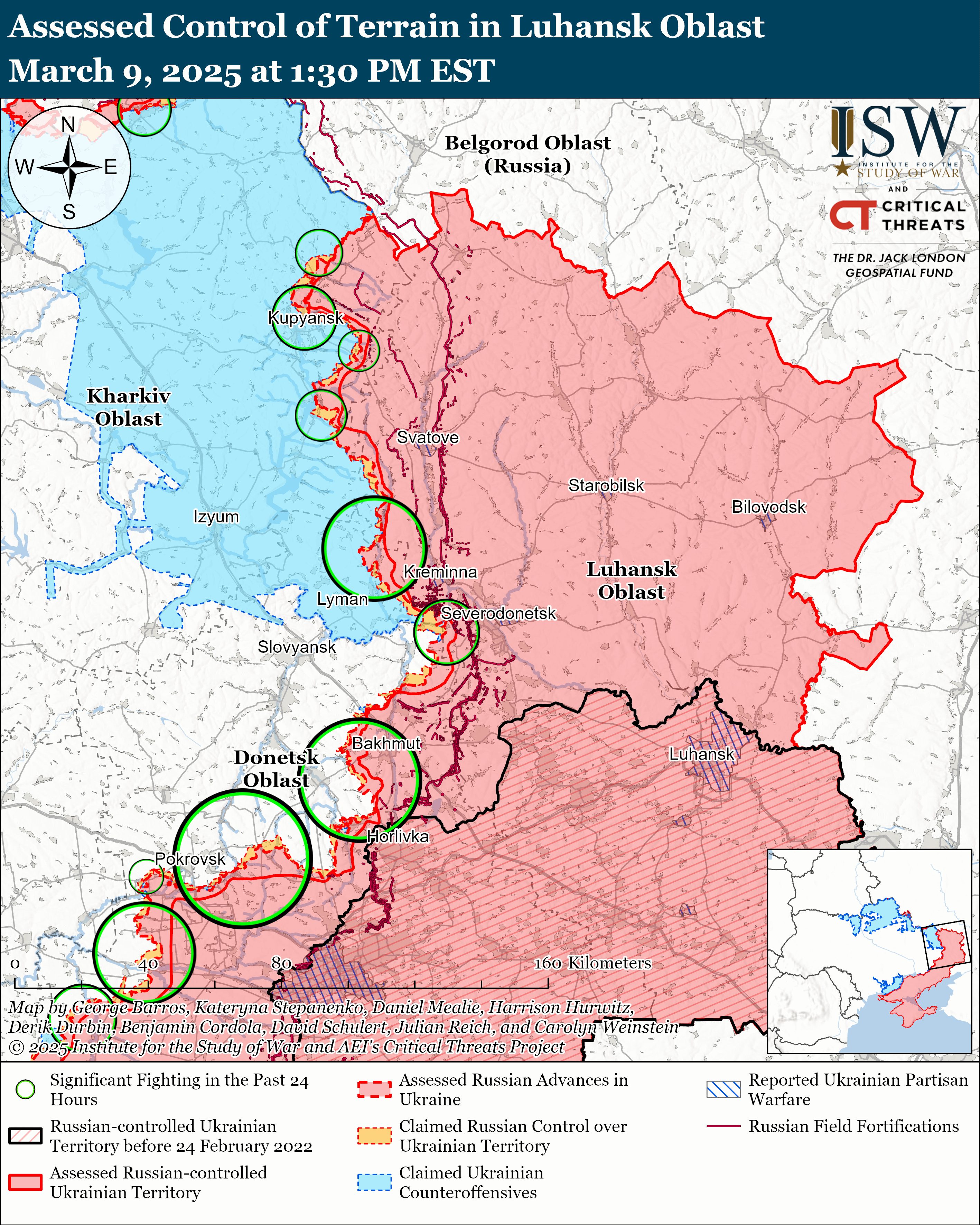 Боевые действия в Украине и России за 9 марта / Карты ISW