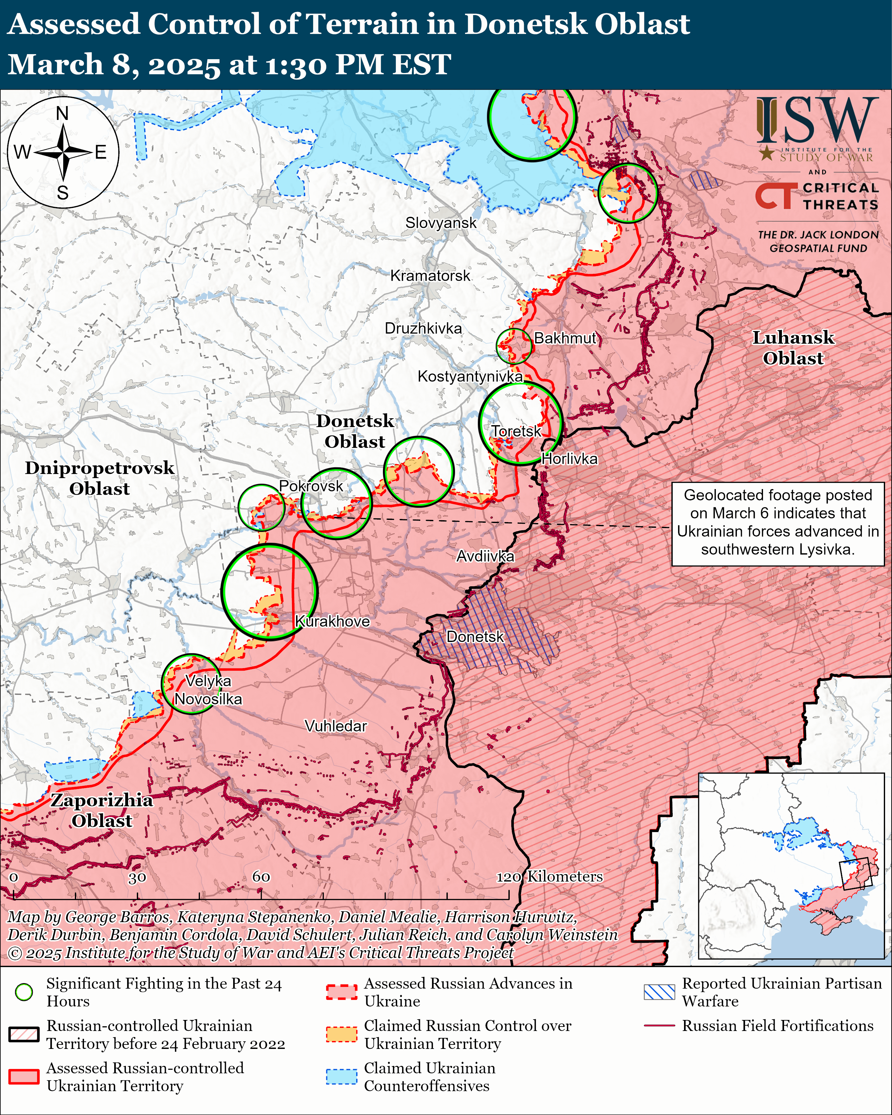 Боевые действия в Украине и России за 8 марта / Карты ISW